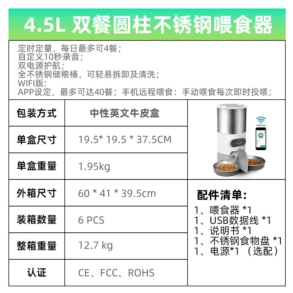 스테인레스 스틸 애완 동물 지능형 피더 개 고양이 먹이 기계 원격 곡물 타이밍 양적 자동 먹이 그릇스토어 가기