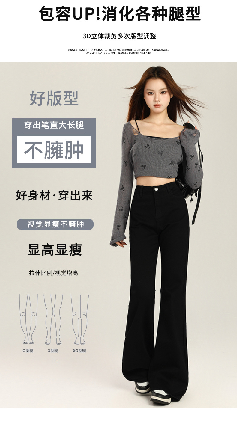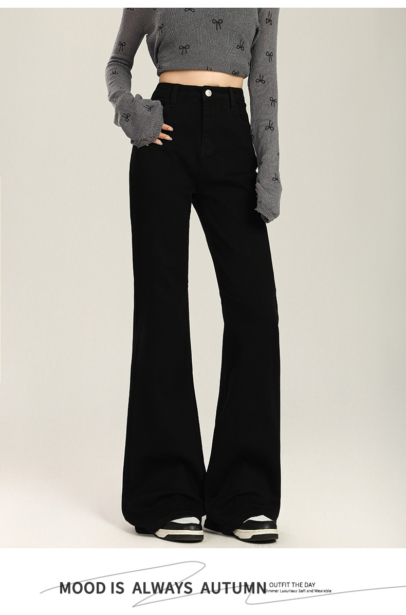 여성용 블랙 마이크로 플레어 청바지 2025 봄 작은 사람들을 위한 하이 웨이스트 슬리밍 비접촉 스트레치 와이드 레그 말굽 바지