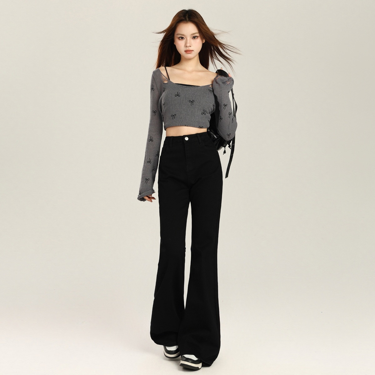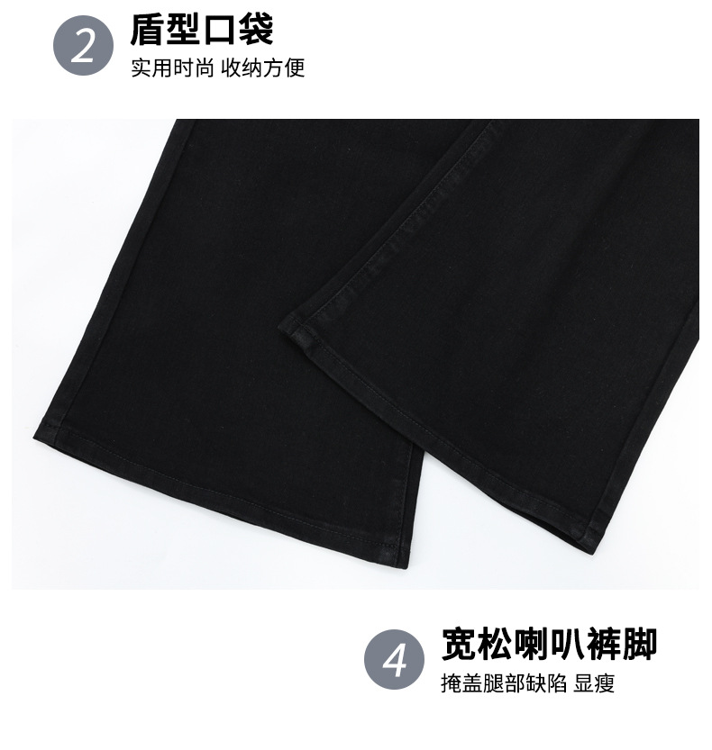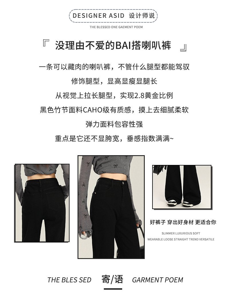 여성용 블랙 마이크로 플레어 청바지 2025 봄 작은 사람들을 위한 하이 웨이스트 슬리밍 비접촉 스트레치 와이드 레그 말굽 바지스토어 가기