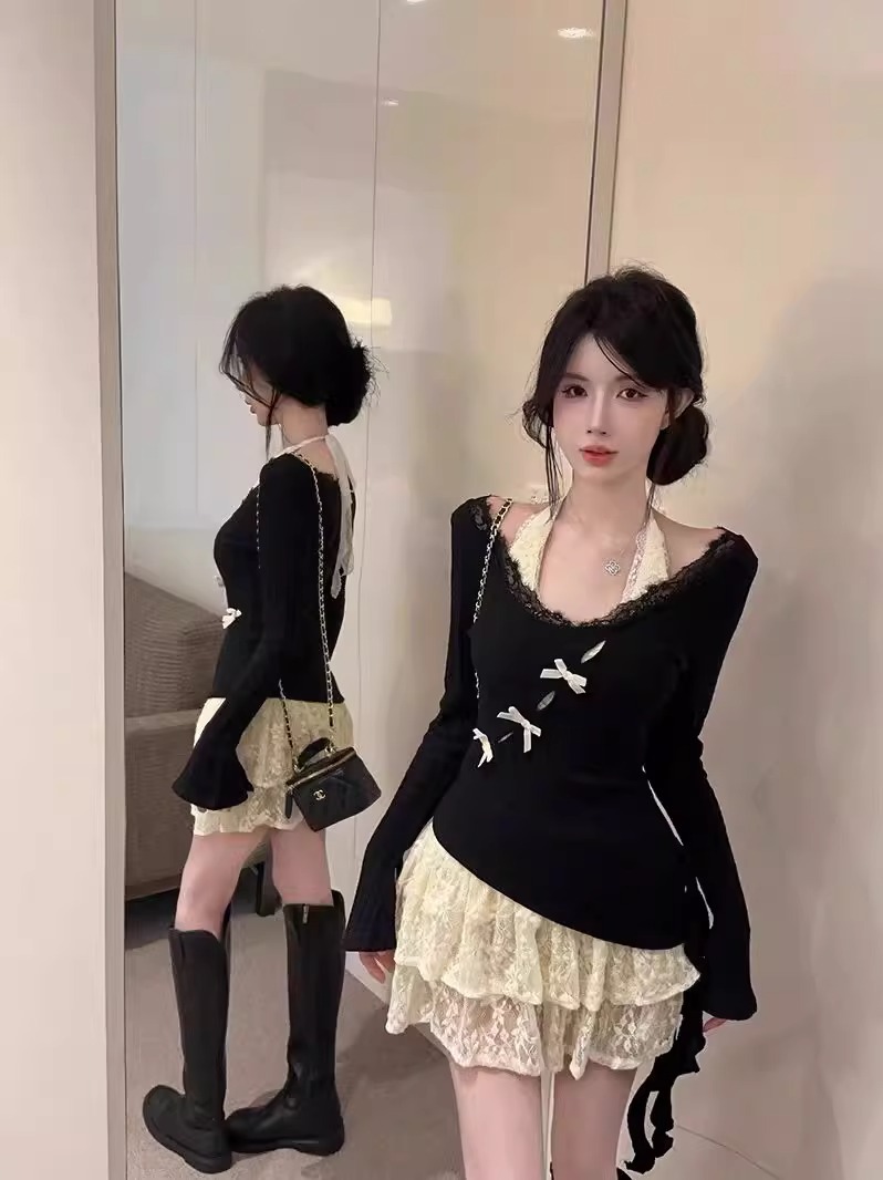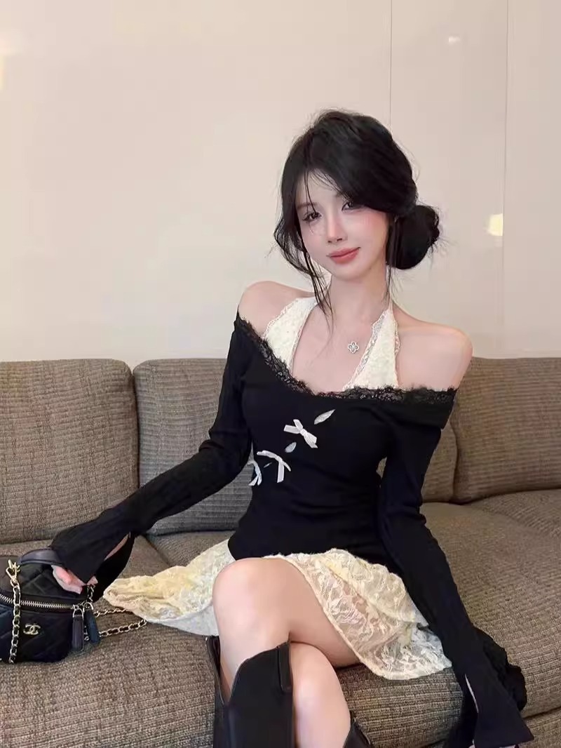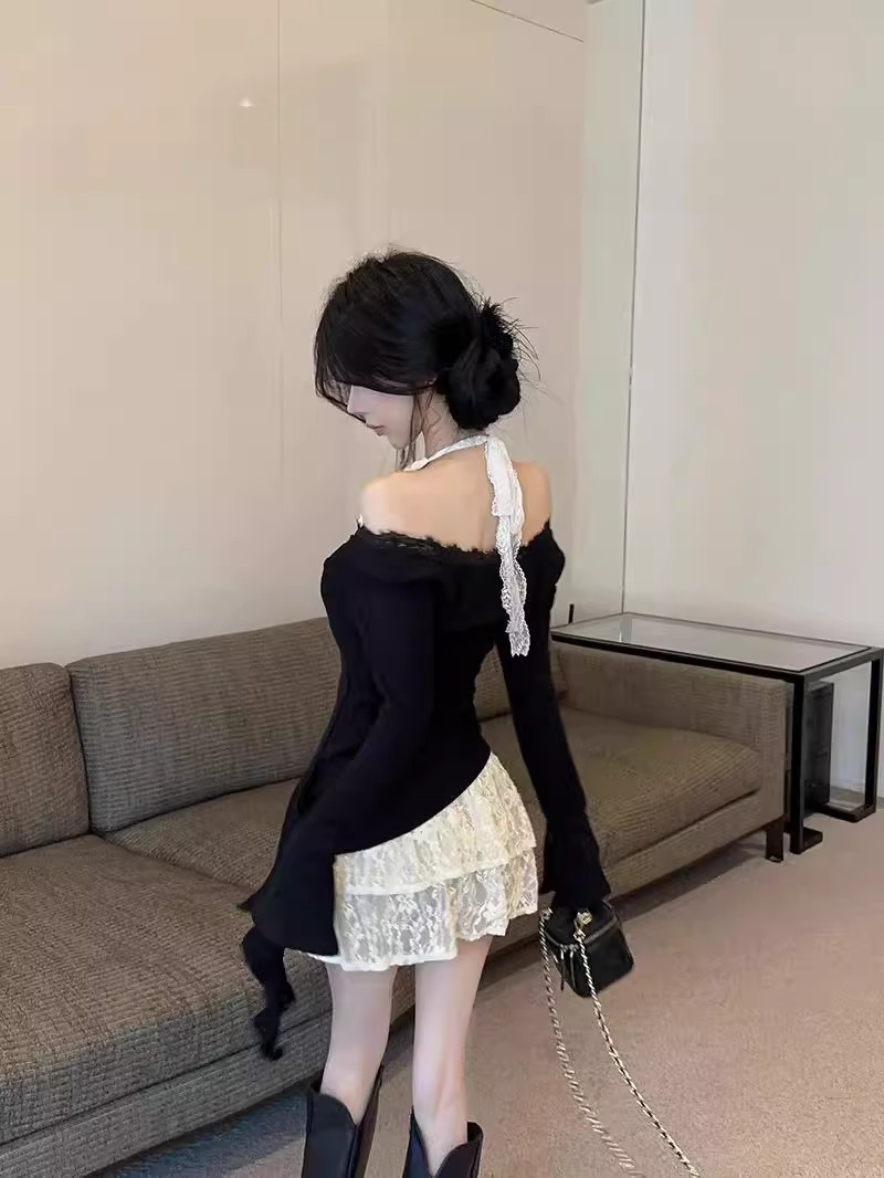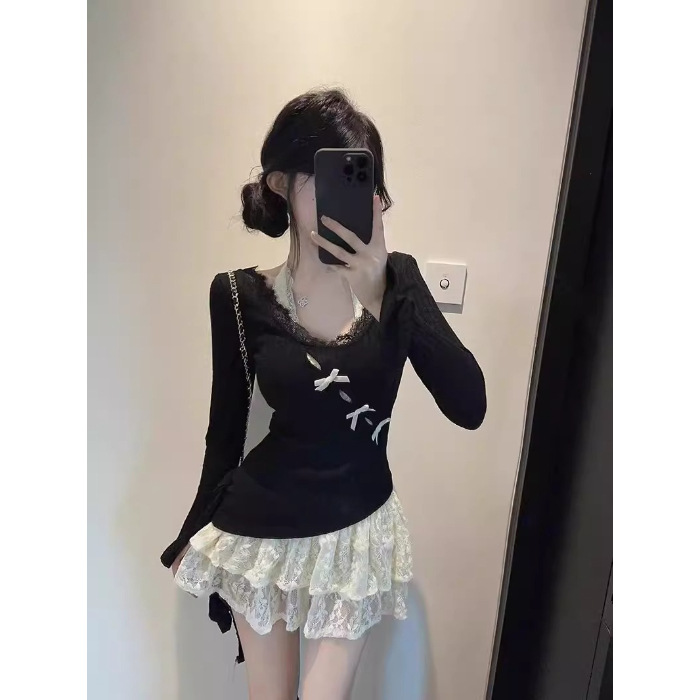 순수한 욕망 스타일 원피스 여성의 2025 새로운 봄과 가을 착용 세트 레이스 탑 디자인 센스 투피스 세트