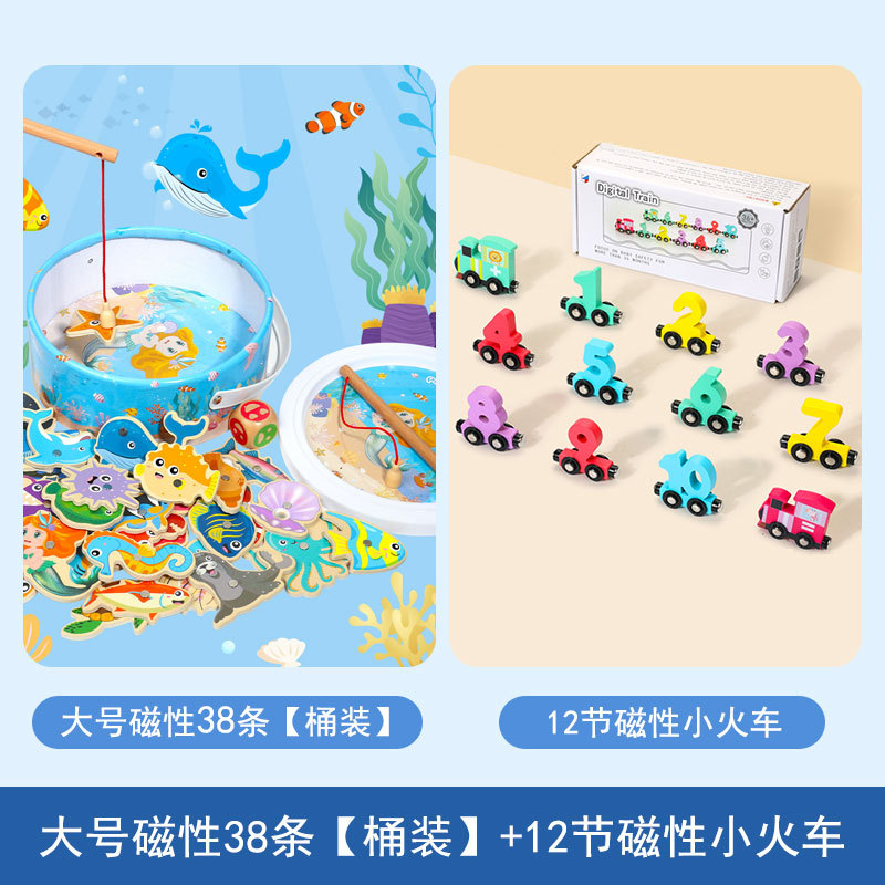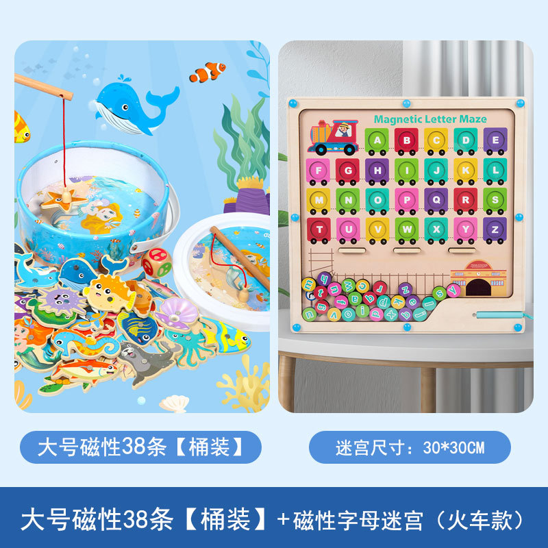 • 38마리의 물고기가 들어 있는 바다 낚시 통 + 자석 문자 미로 기차 모형