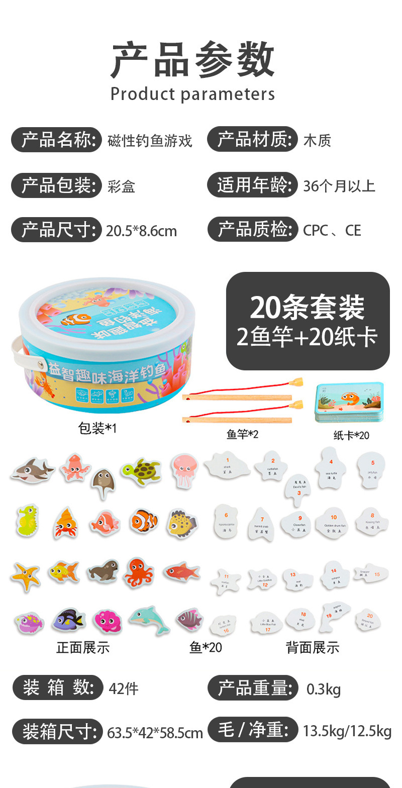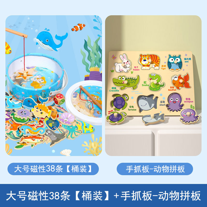 • 38마리의 물고기가 들어있는 바다낚시통 + 손잡이판 - 동물퍼즐