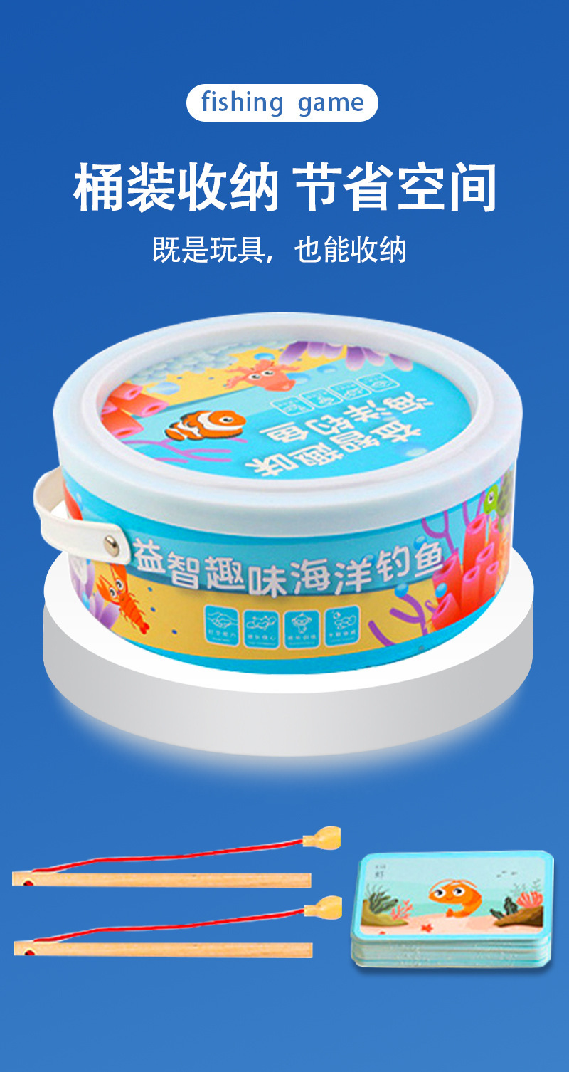 • 양동이에 물고기 30마리 + 종이 카드 + 낚싯대 2개