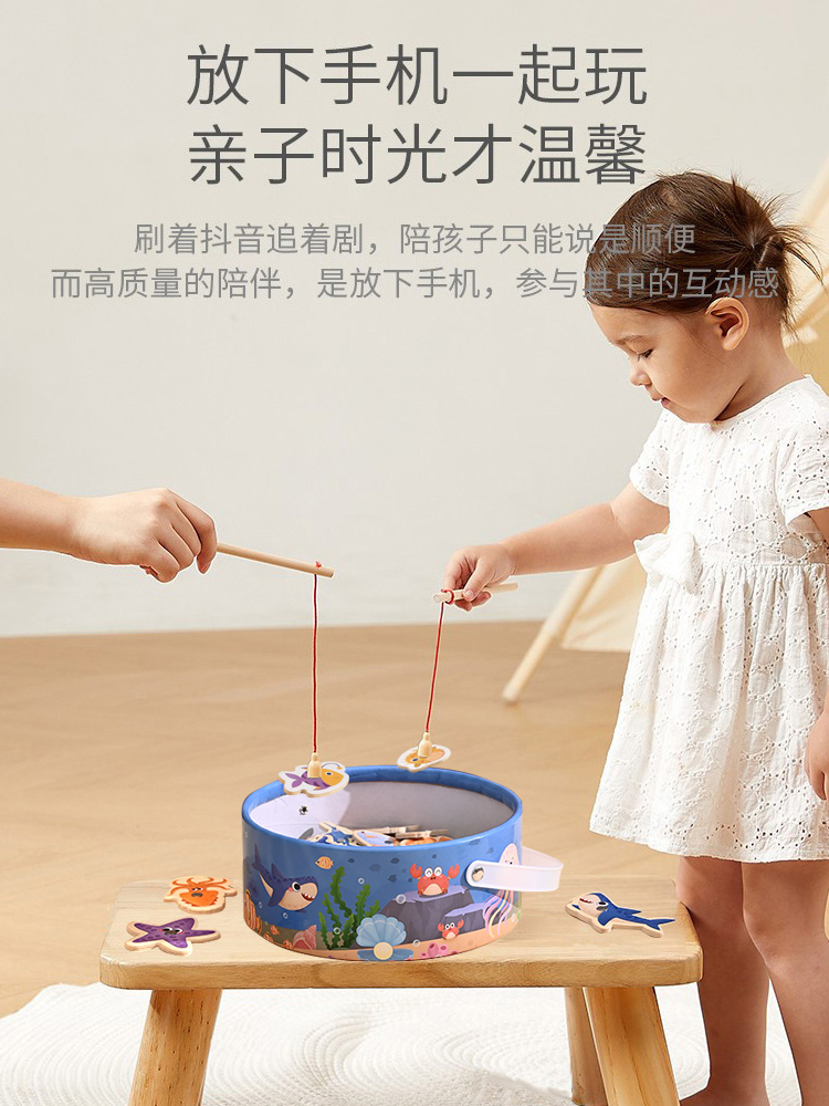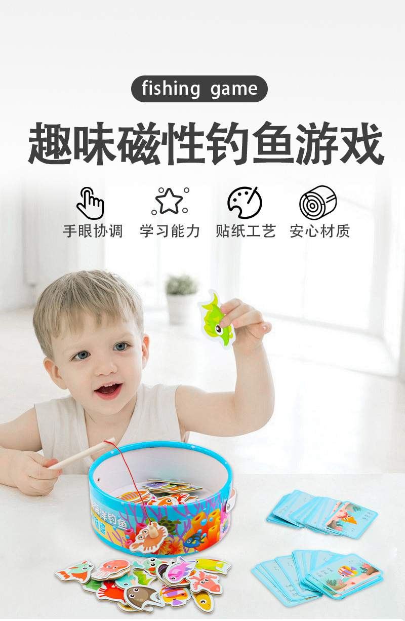 어린이 교육 장난감 나무 자기 새끼 고양이 낚시 소년과 소녀 놀이 집 조기 교육 어린이 게임 장난감 배럴