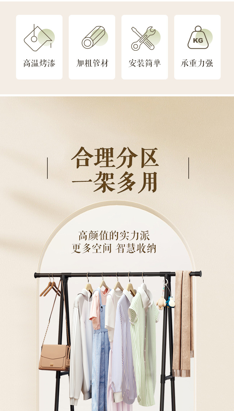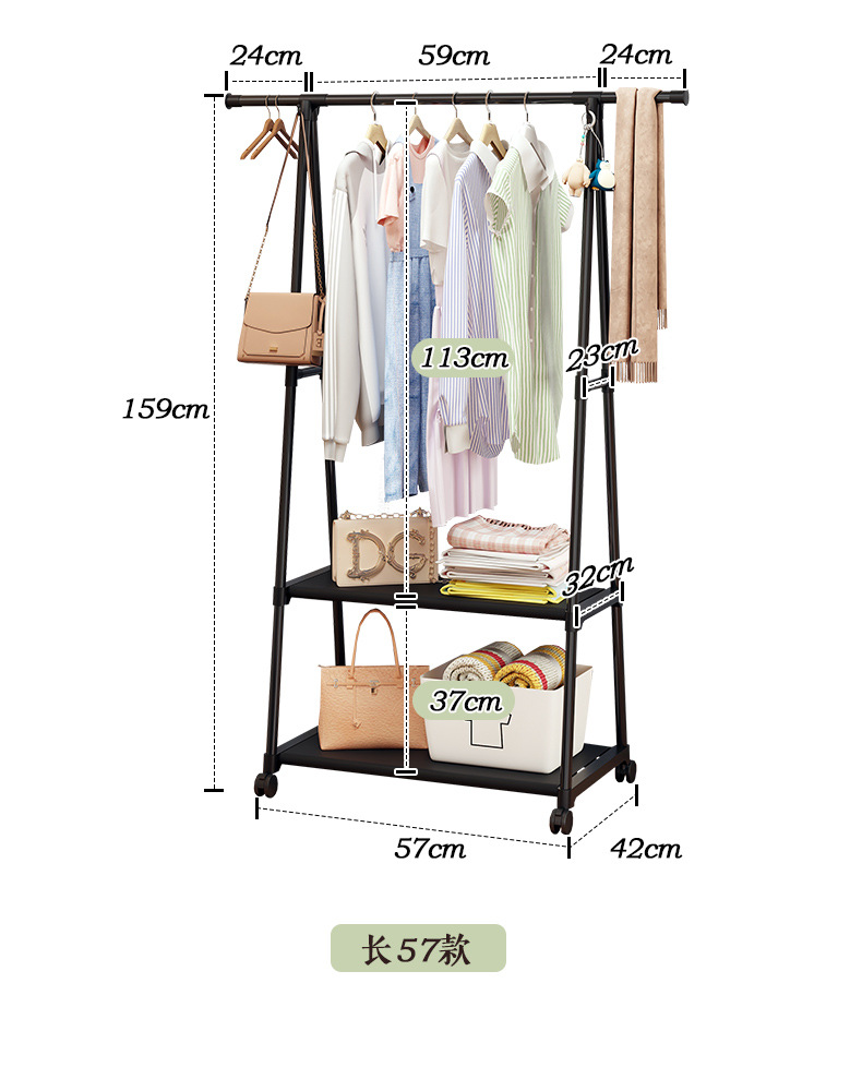 바닥 코트 랙 침실 간단한 옷걸이 이동식 두꺼운 옷 건조 막대 작은 가정용 저장 랙 국경