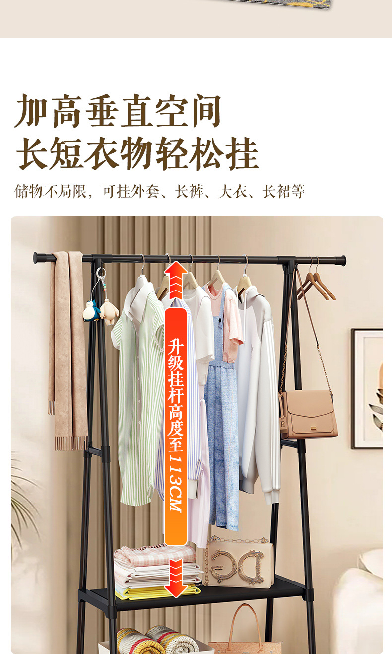 바닥 코트 랙 침실 간단한 옷걸이 이동식 두꺼운 옷 건조 막대 작은 가정용 저장 랙 국경스토어 가기
