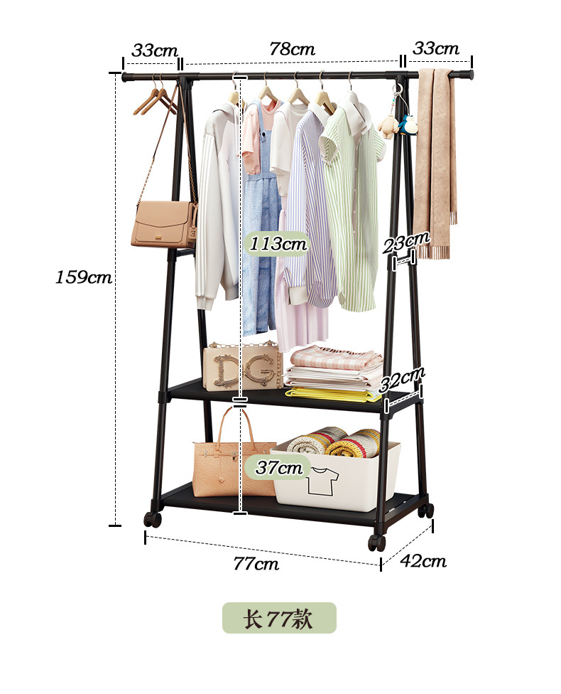 • 클래식 블랙 길이 77cm 이동식 플로어 스탠딩 코트 랙