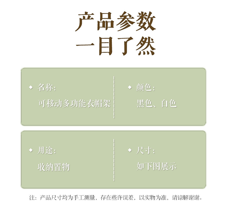 • 클래식 블랙, 길이 57cm, 이동식 플로어 스탠딩 코트 랙