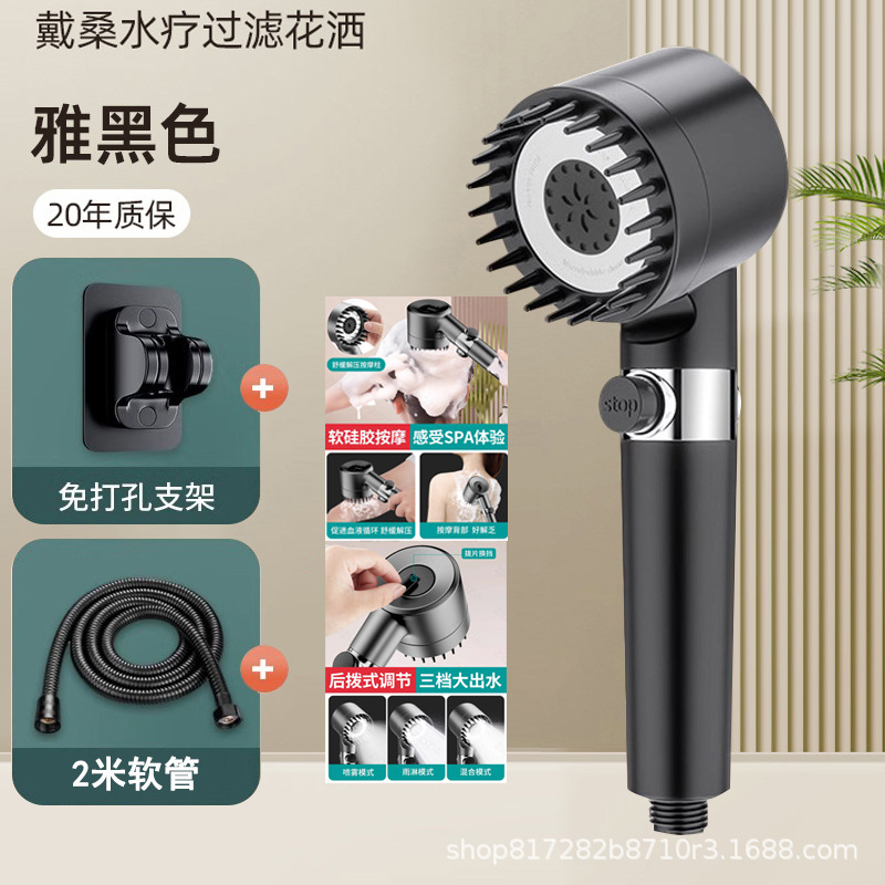 • [블랙 세트 3] 마사지 필터 샤워 + 1.5m 암호화 방폭 호스