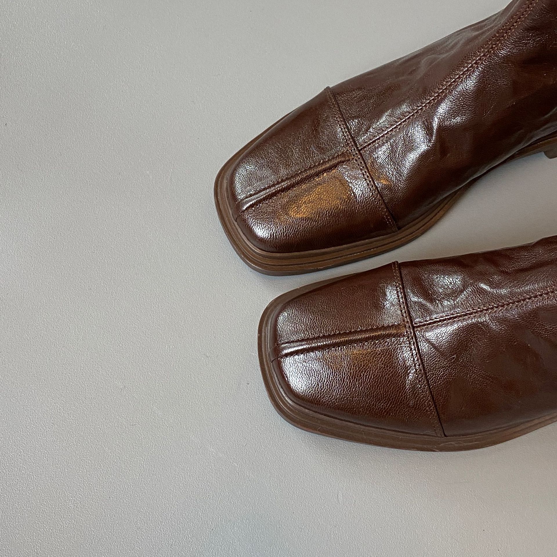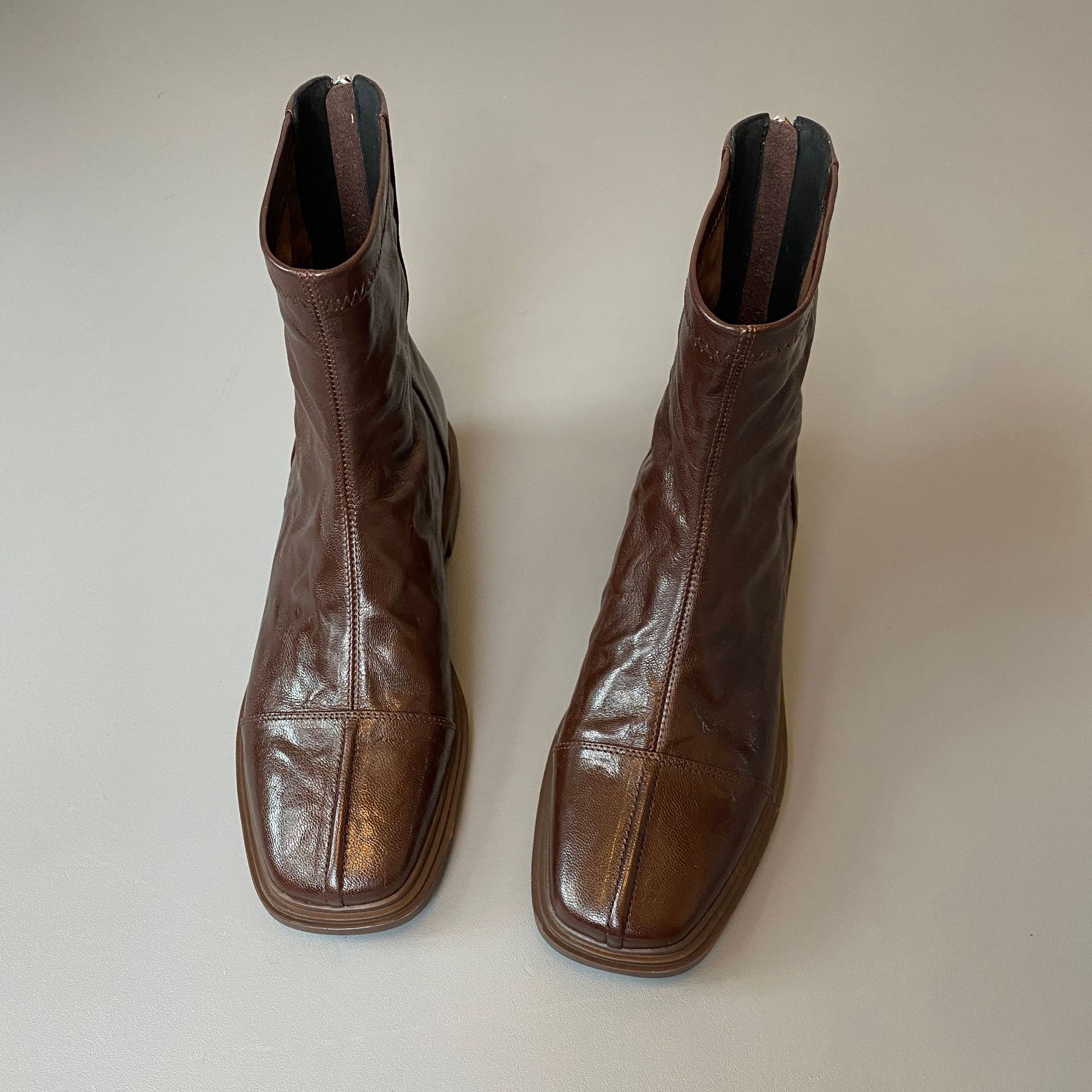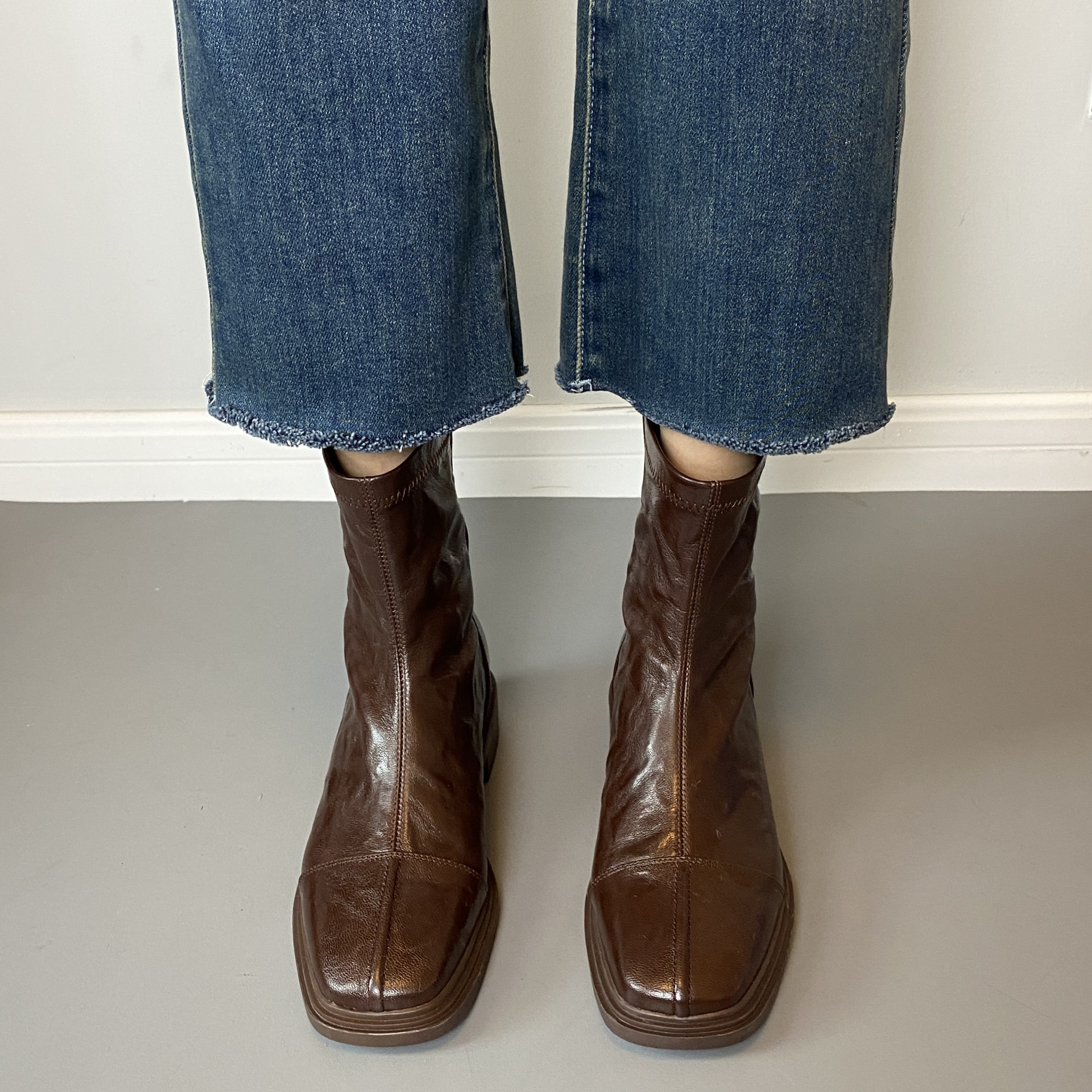 Cowhide 버전 ~ 부드러운 바닥 로우 힐 짧은 부츠 여성 스퀘어 헤드 백 지퍼 부츠 가을과 겨울 2024 새로운 빈티지 마틴 부츠스토어 가기