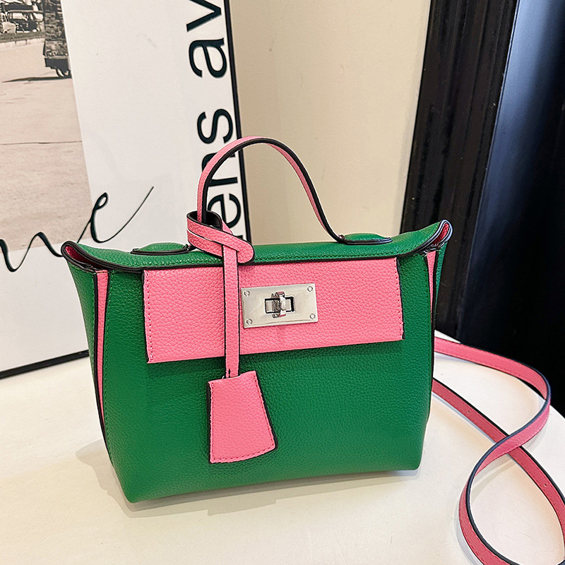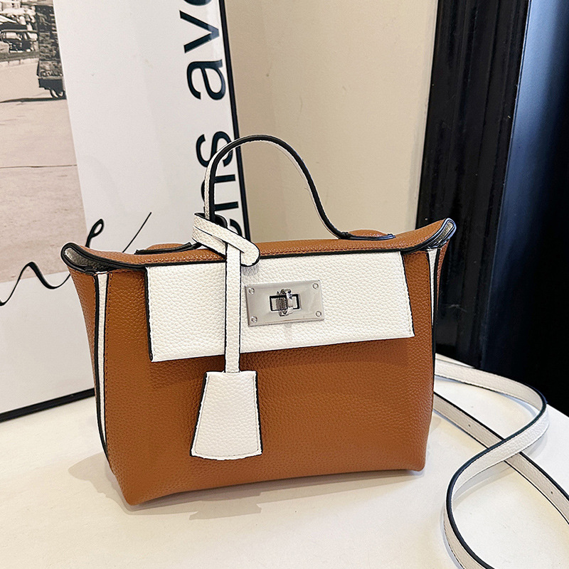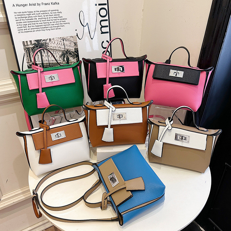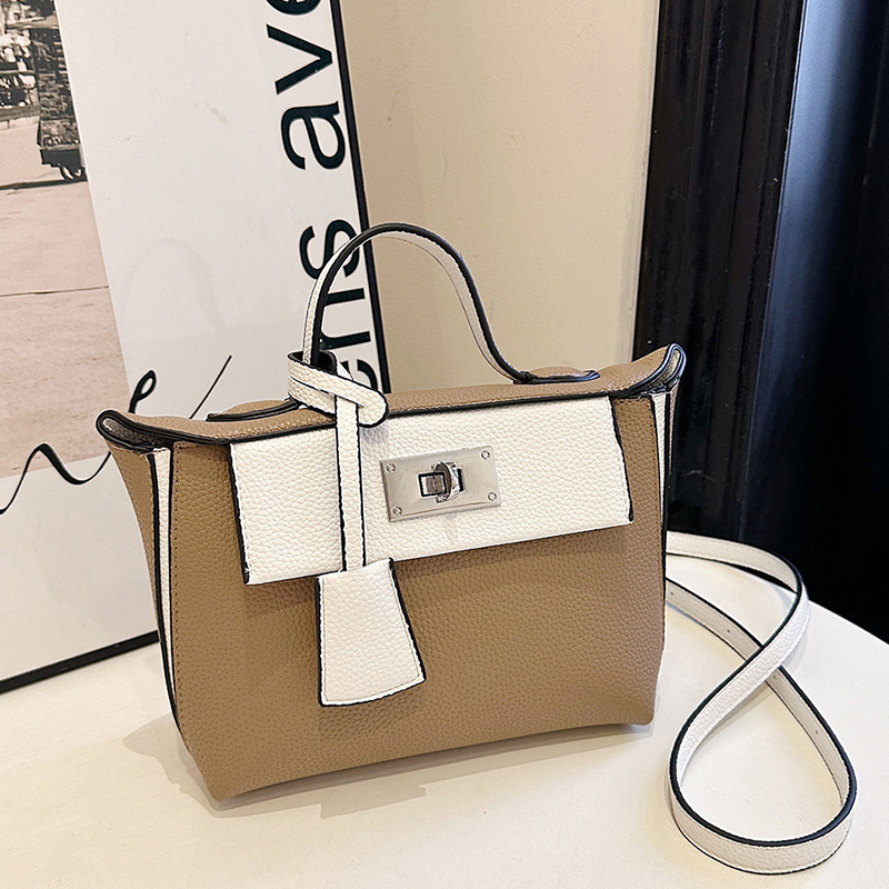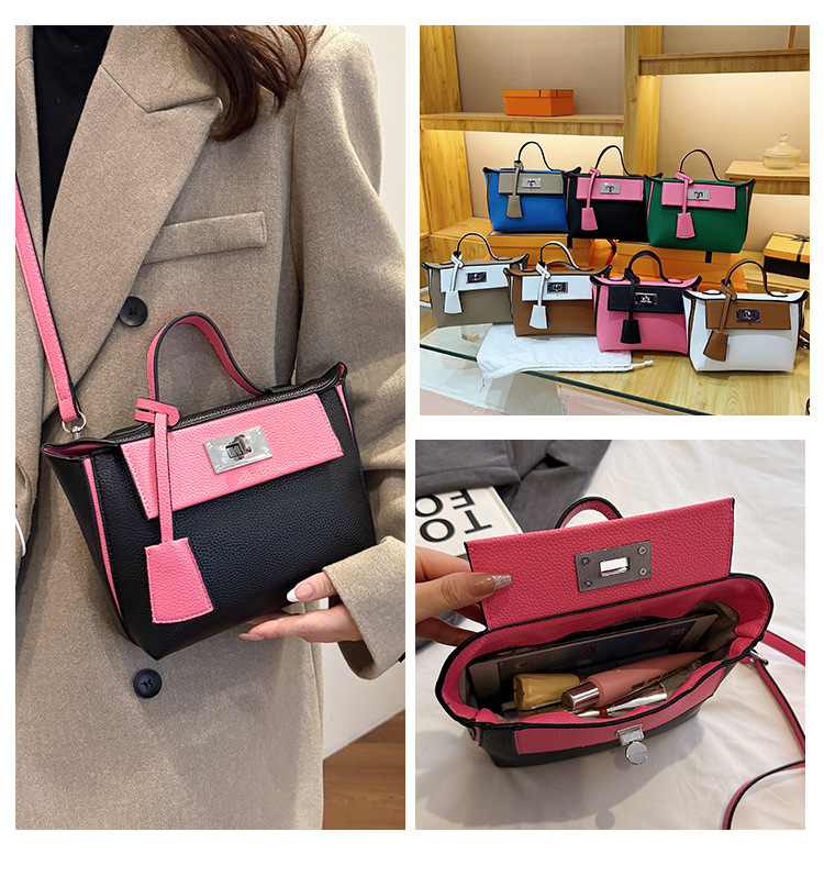 여성용 가방 컬러 블록 잠금 버클 켈리 가방 2024 새로운 만두 가방 날개 가방 통근 휴대용 어깨 작은