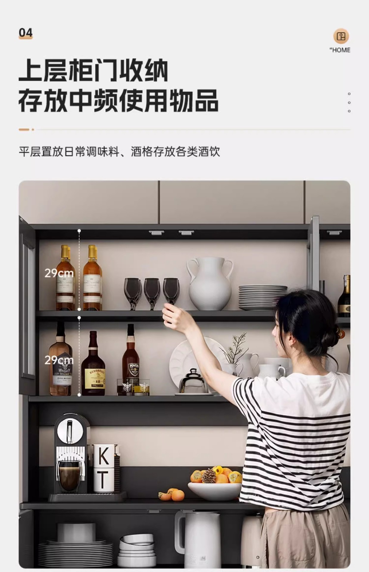 • [쇼트 캐비닛 모델] 10*34*80cm 이탈리안 라이트 럭셔리 그레이 ★ 원목 조개껍데기 손잡이