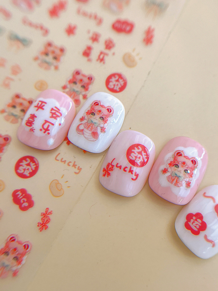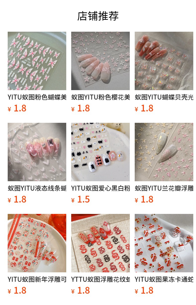 YITU 개미 그림 플랫 핑크 뱀 네일 아트 스티커 보우 머니 접착 네일 장식 스티커 YT4609스토어 가기