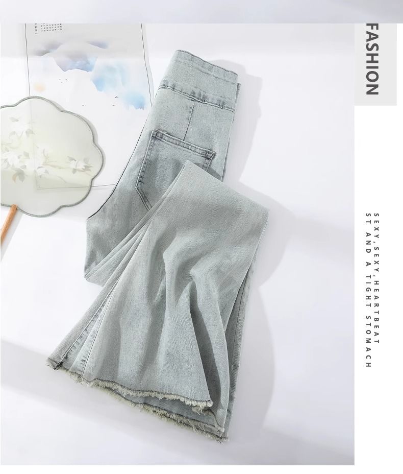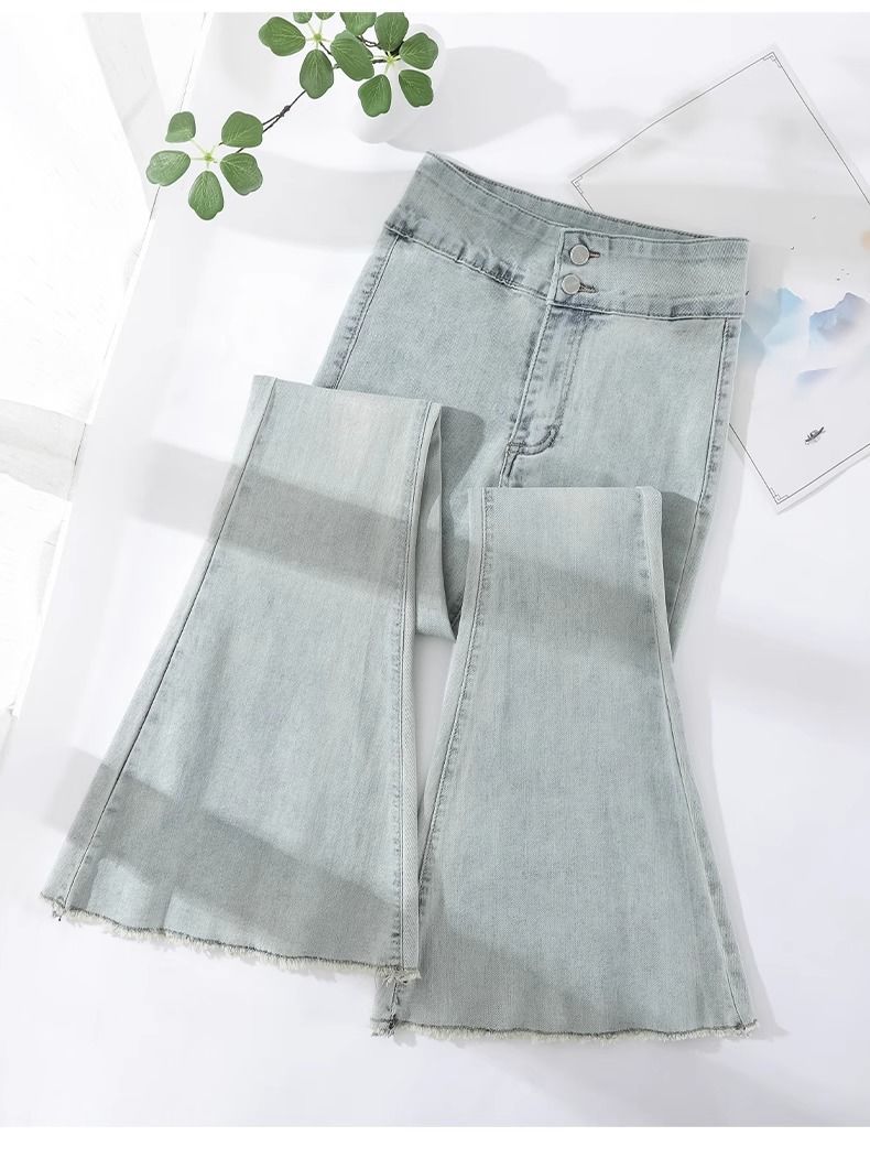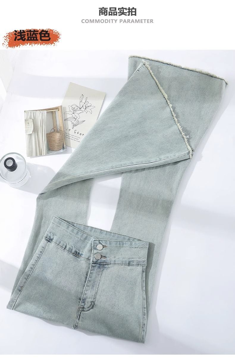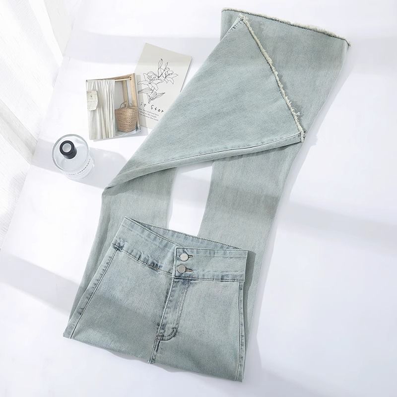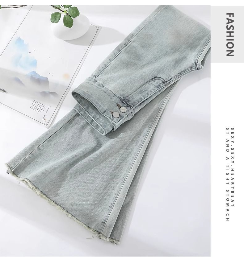 여성 높은 허리 슬림 청바지 2025 봄과 가을 새로운 높은 허리 슬리밍 말굽 플래 팬츠 생선 꼬리 바지스토어 가기