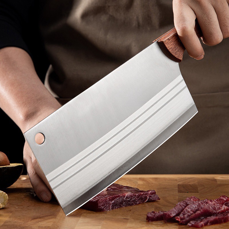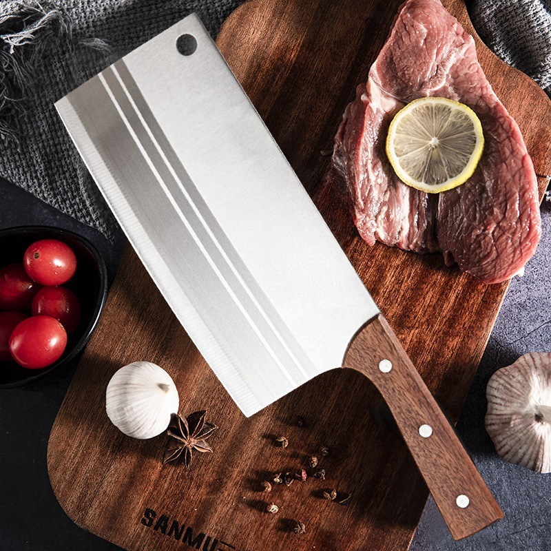 스테인레스 스틸 주방 칼 가정용 절단 칼 요리사 멀티 사용 고기 절단 칼 날카로운 배 나무 손잡이 실행 강후 부엌 칼스토어 가기