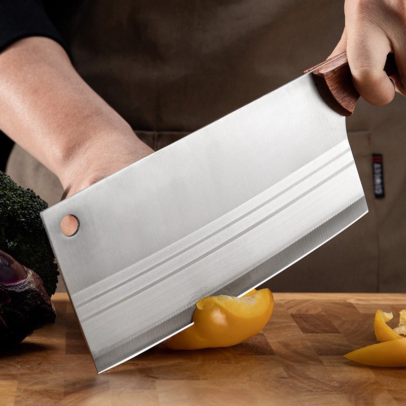 스테인레스 스틸 주방 칼 가정용 절단 칼 요리사 멀티 사용 고기 절단 칼 날카로운 배 나무 손잡이 실행 강후 부엌 칼