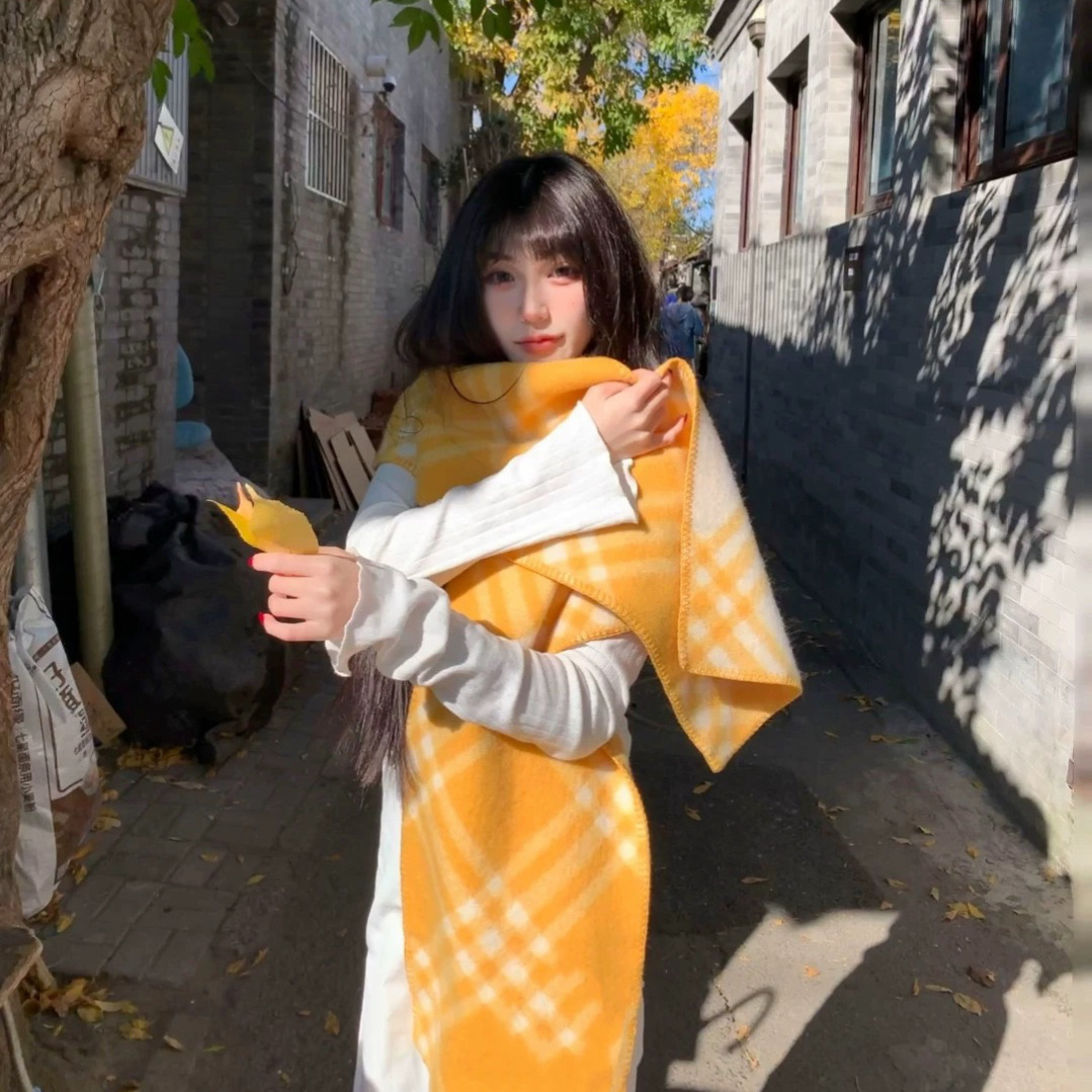 Quan Zhixian 동일 스타일 모방 캐시미어 스카프 여자 겨울 하이 엔드 양면 격자 무늬 따뜻한 목 두꺼운 올매치 목도리