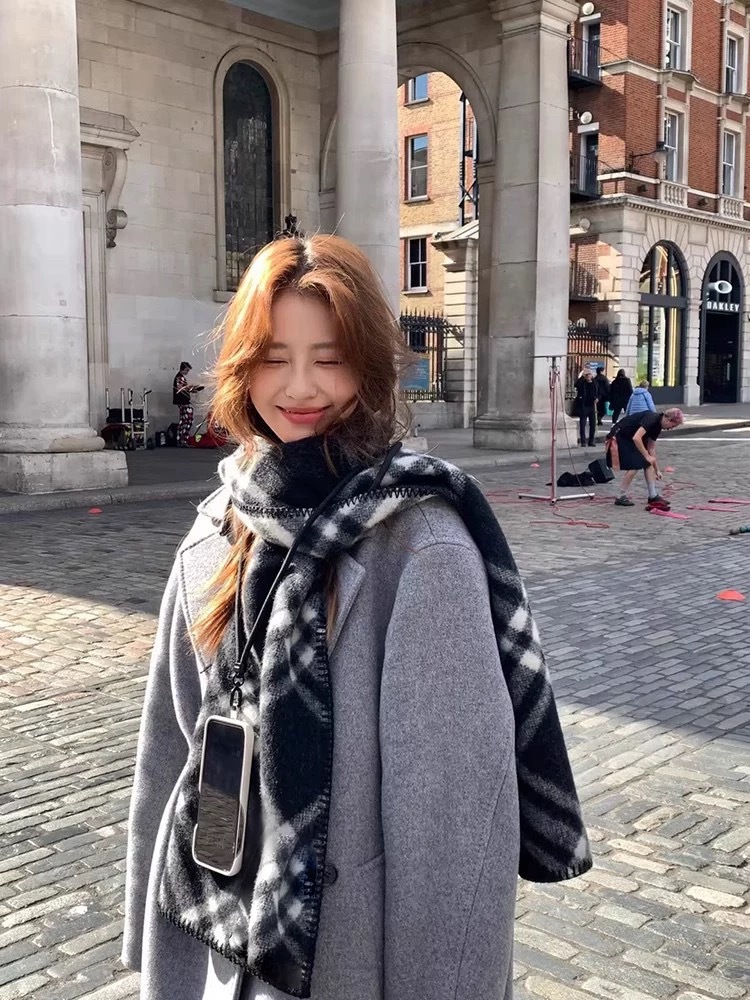 Quan Zhixian 동일 스타일 모방 캐시미어 스카프 여자 겨울 하이 엔드 양면 격자 무늬 따뜻한 목 두꺼운 올매치 목도리스토어 가기