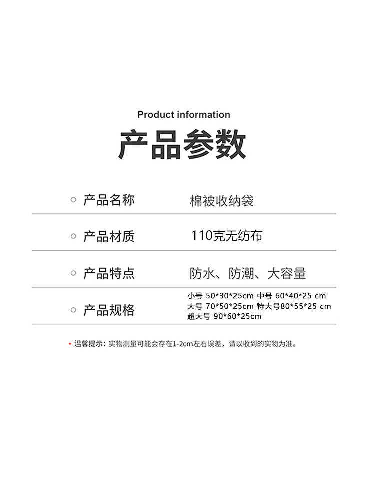 • 킹 사이즈 80*55*25【 3kg 이불 2개 또는 6kg 이불 1개】