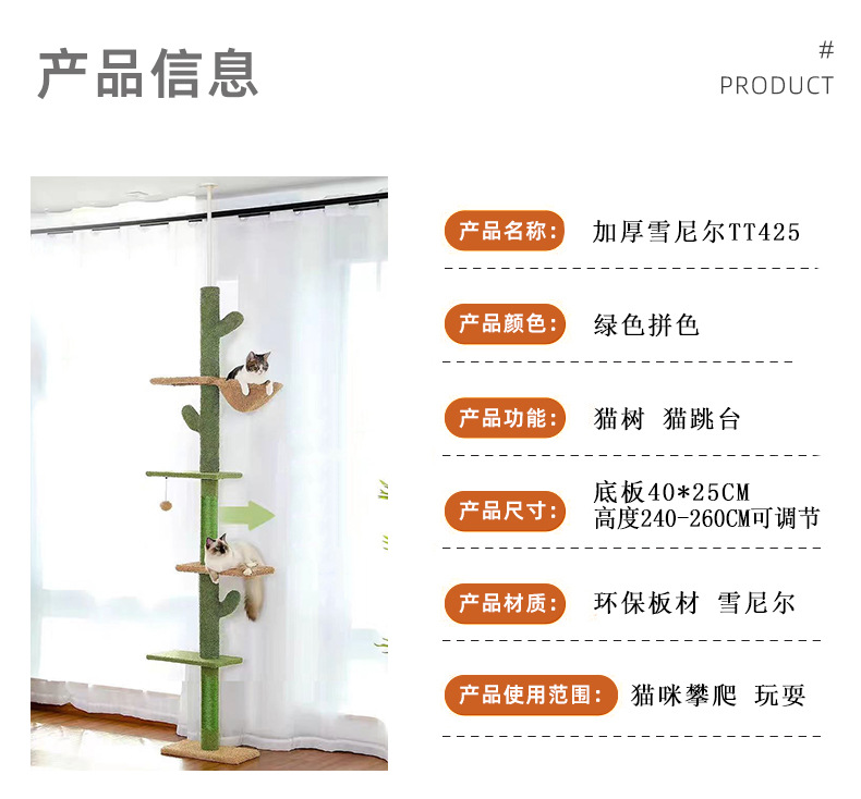 선인장 기둥 고양이 둥지 고양이 나무 통합 고양이 긁기 보드 Chenille 고양이 장난감 단단한 나무 고양이 등반 랙스토어 가기