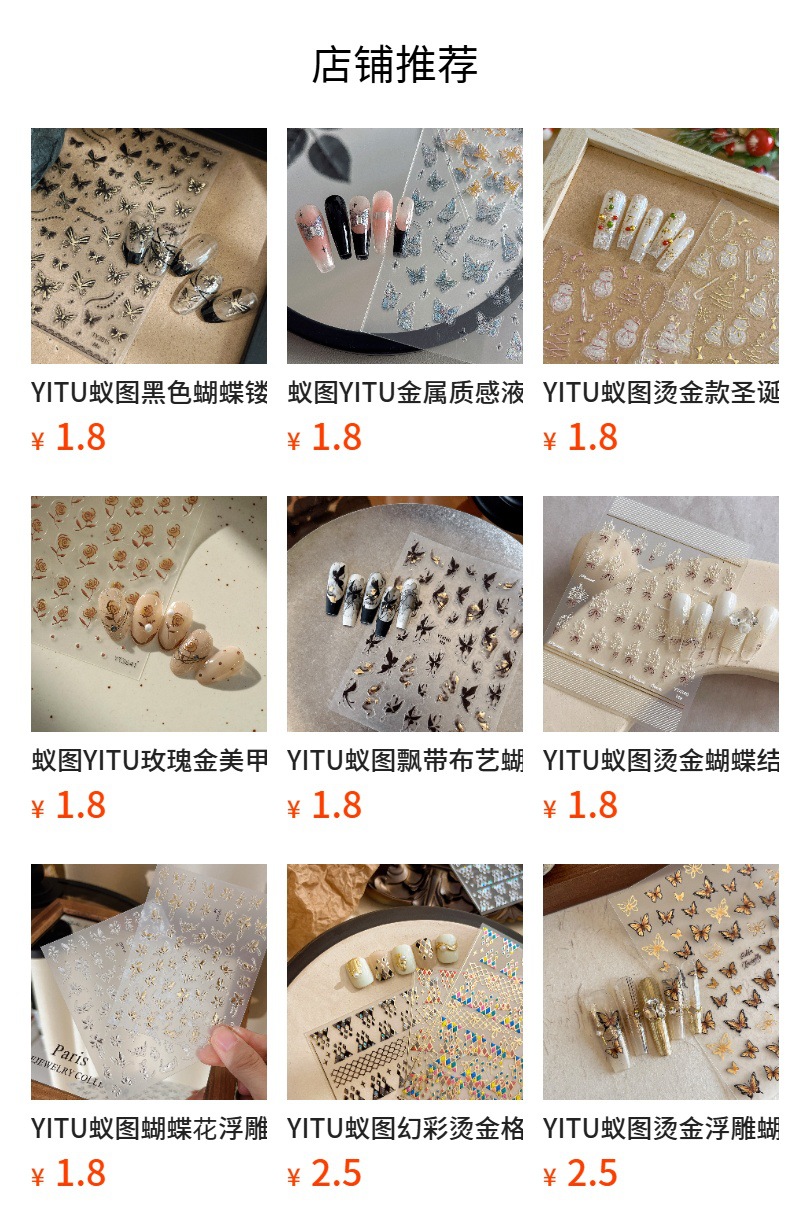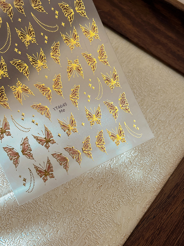 YITU 개미 그림 브론징 나비 네일 아트 스티커 Mang 스타 체인 체크 라이트 럭셔리 접착제 네일 장식 스티커 YT4645스토어 가기