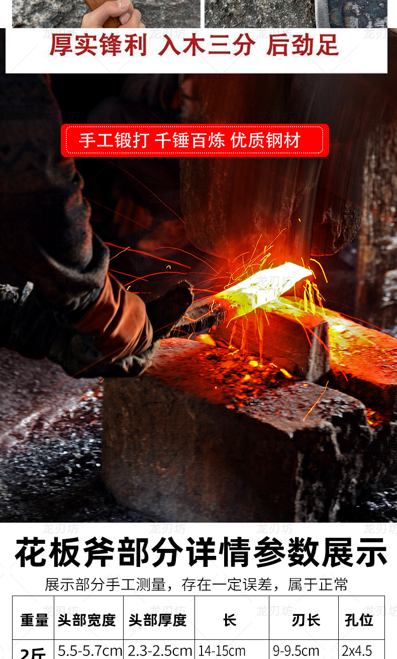 • 약 1.5kg개의 꽃판 도끼 [60개의 Qinggang 도끼 손잡이 포함] 설치되지 않음