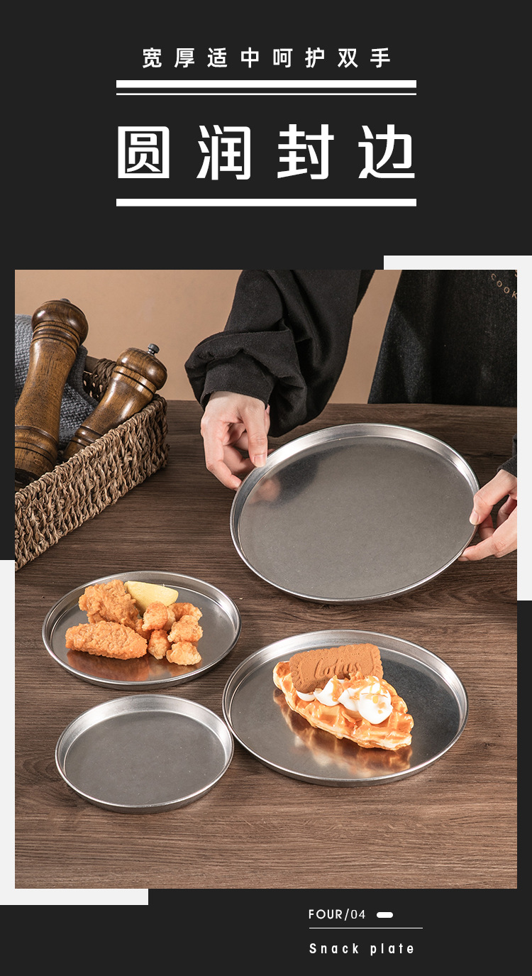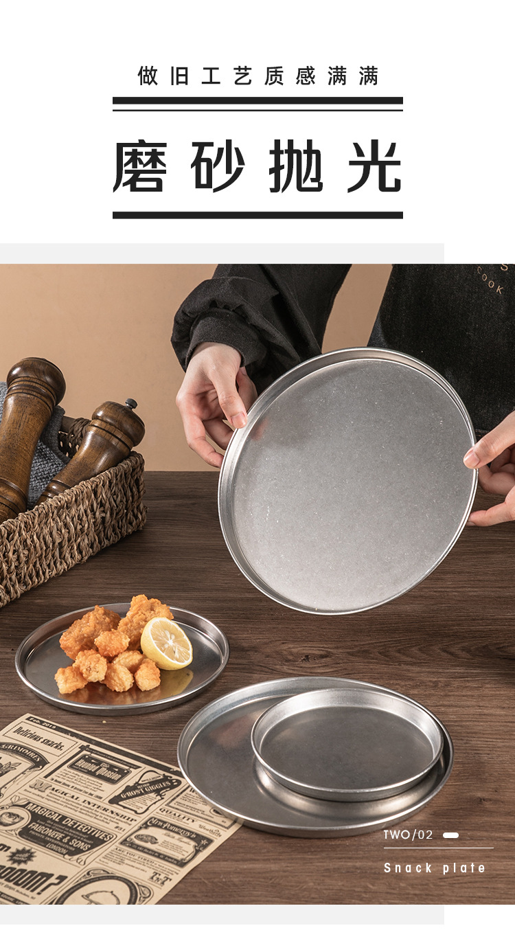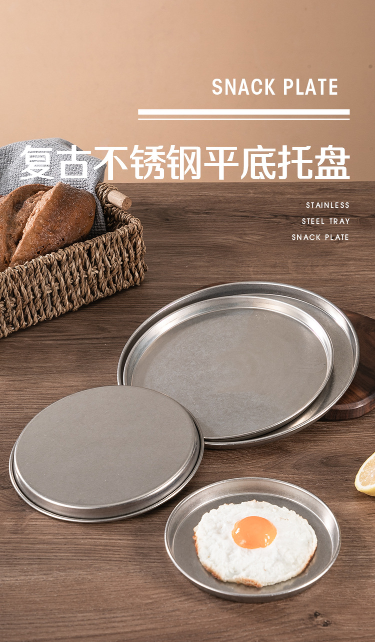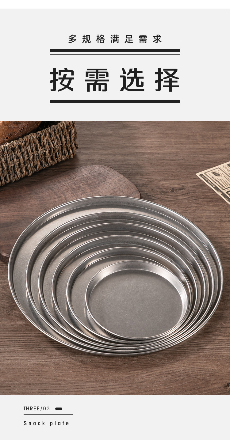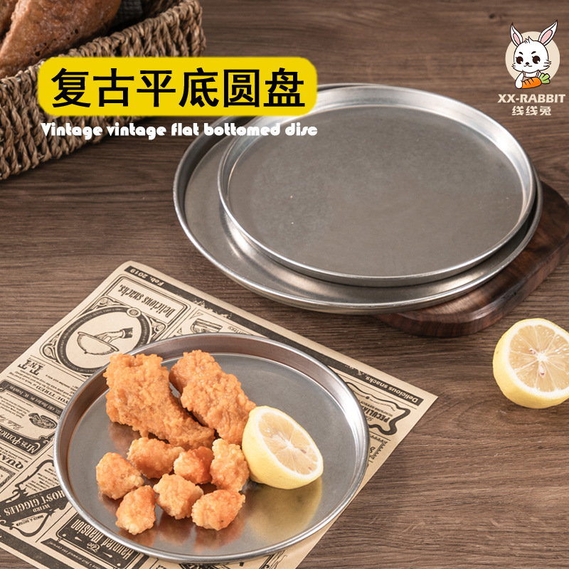빈티지 드레스 스테인레스 스틸 디스크 상업용 산업용 바베큐 플레이트 플랫 하단 디저트 케이크 플레이트 디너 플레이트 스낵 플레이트스토어 가기