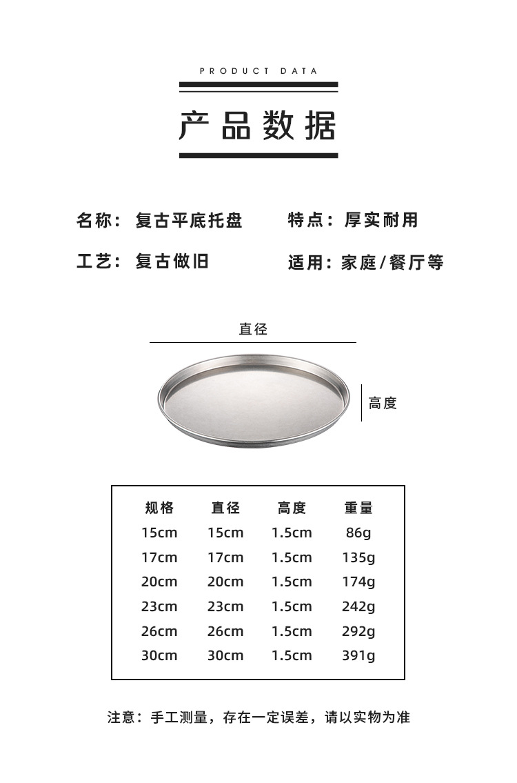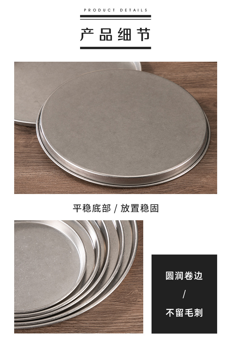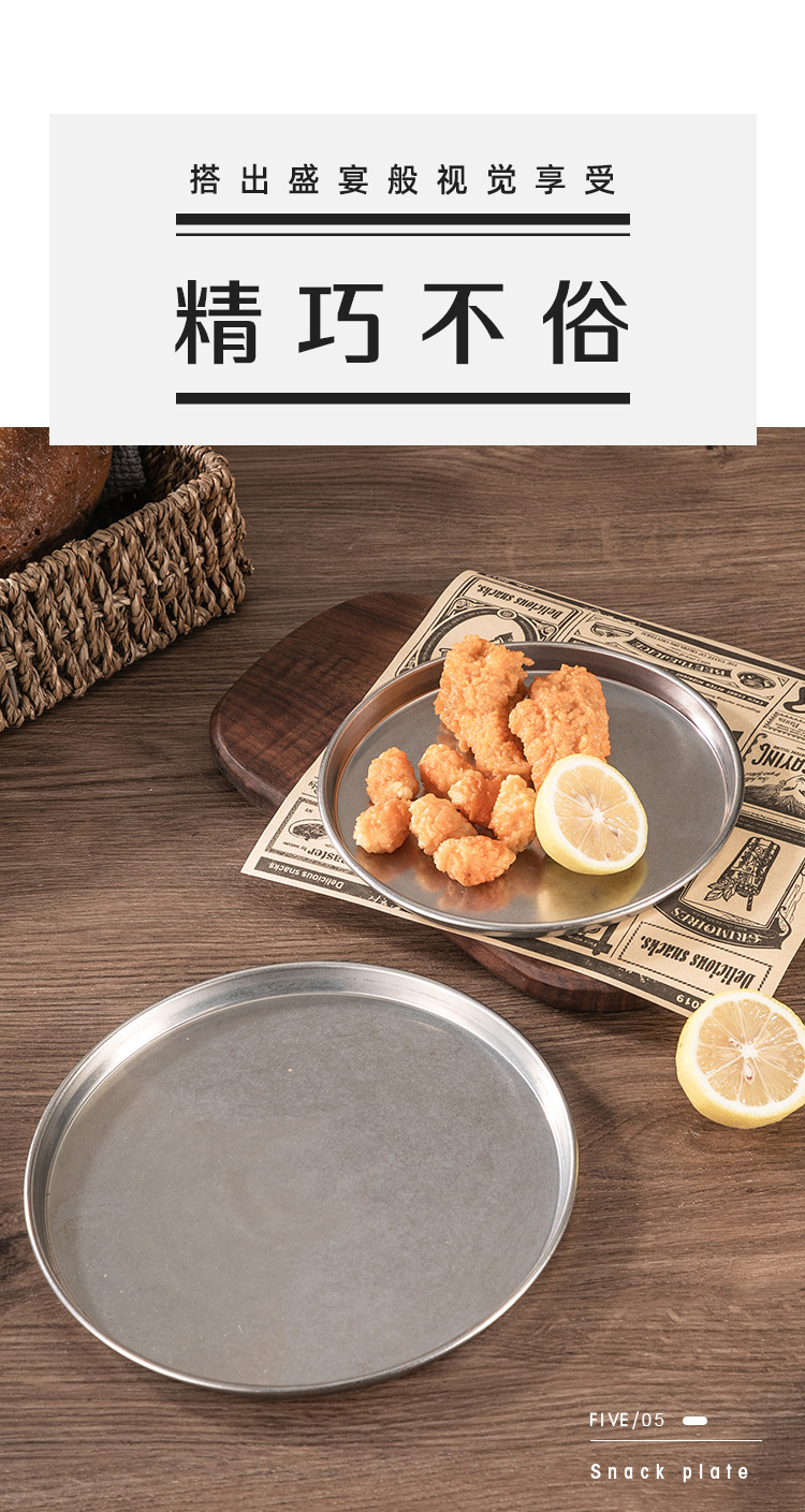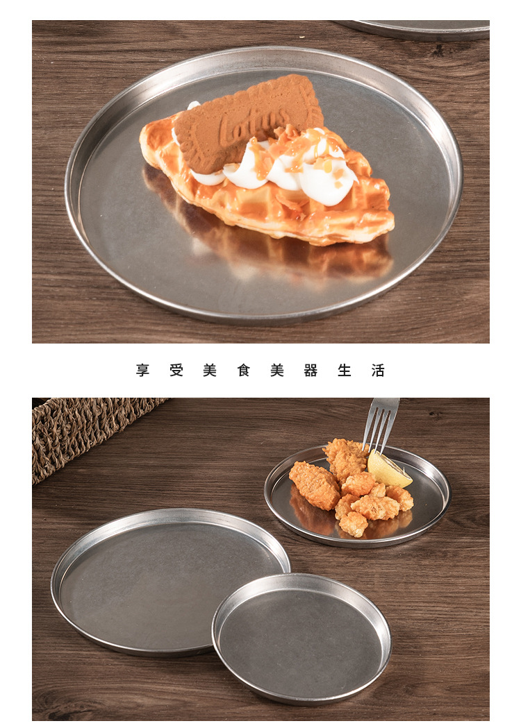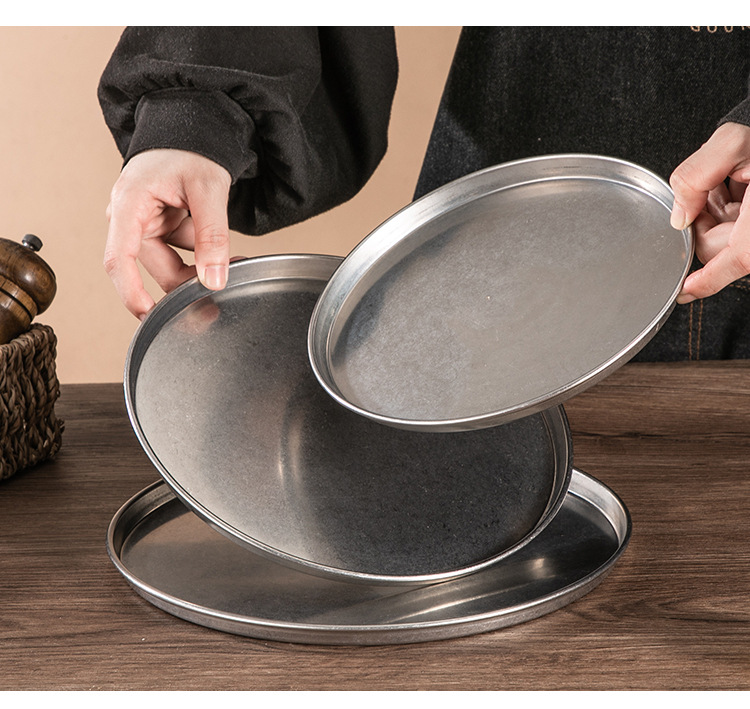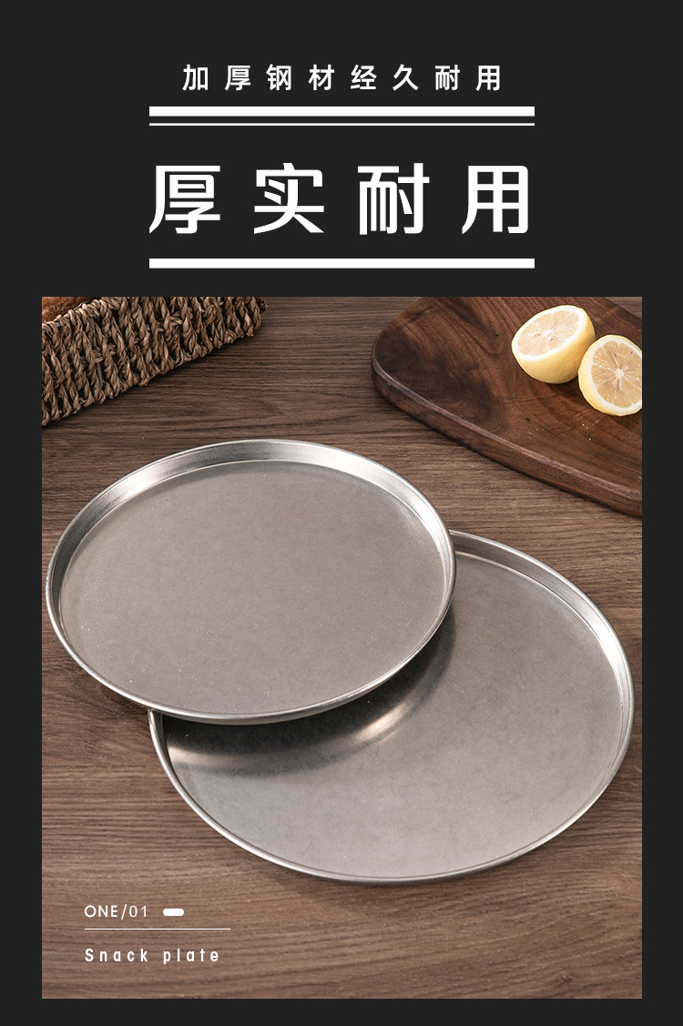 빈티지 드레스 스테인레스 스틸 디스크 상업용 산업용 바베큐 플레이트 플랫 하단 디저트 케이크 플레이트 디너 플레이트 스낵 플레이트스토어 가기