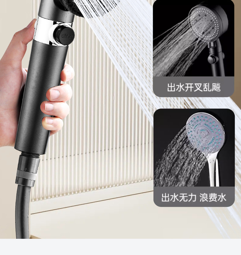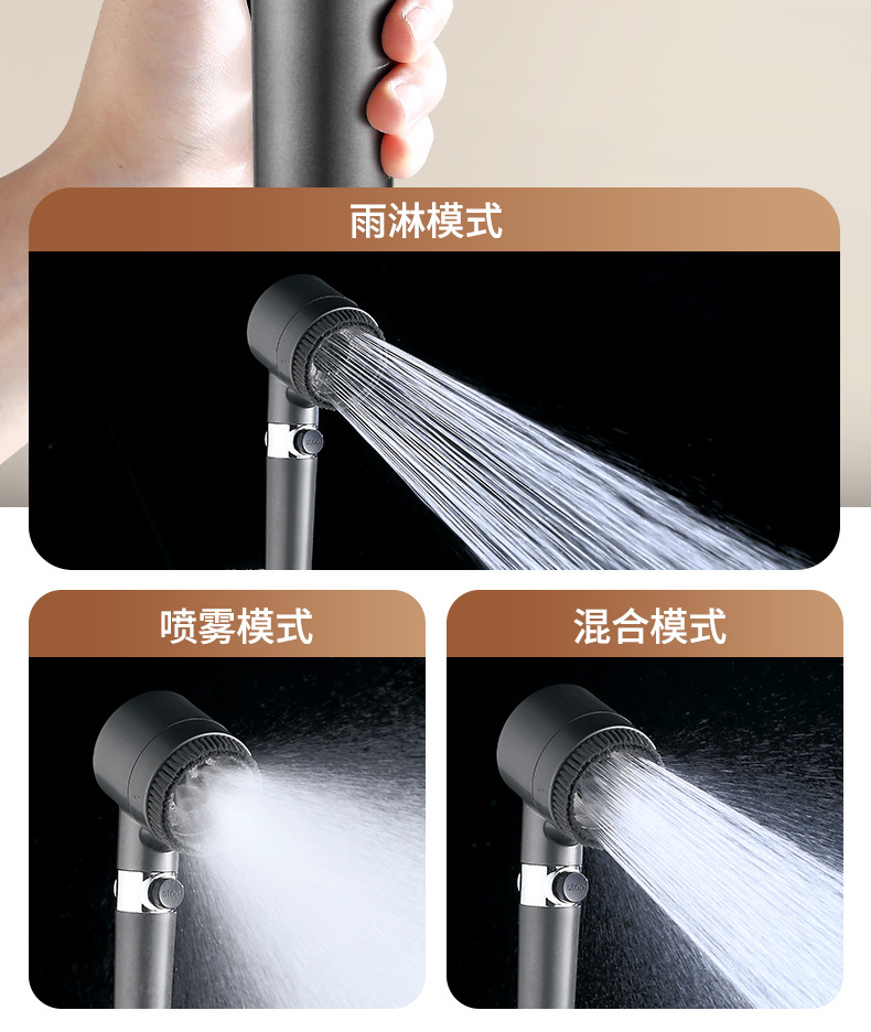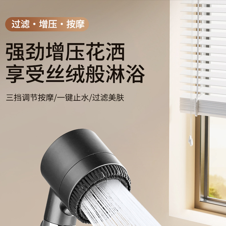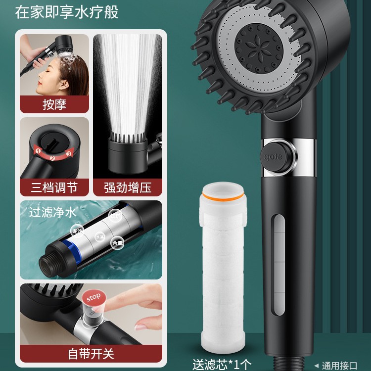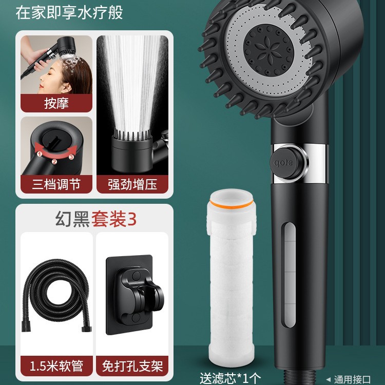 • 【SA-44】【팬텀 블랙 세트 3】고압 필터 샤워기 + 1.5m 방폭 호스 + 거치대