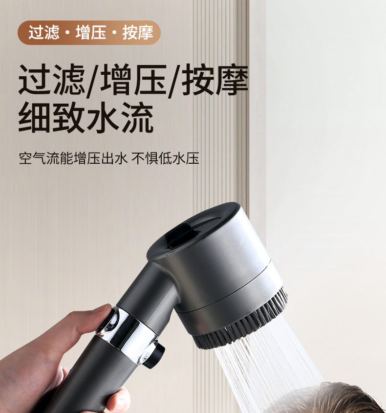 • 【SA-44】【팬텀 블랙 세트 1】 가압 필터 샤워기 + 무타공 거치대