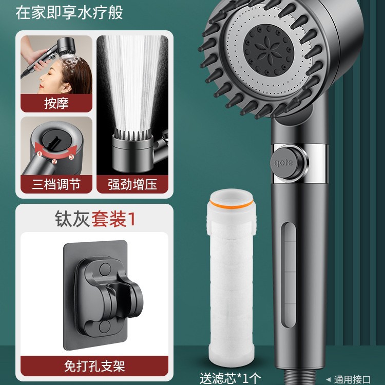 • 【SA-44】【티타늄 그레이 세트 1】 가압 필터 샤워기 + 무타공 거치대