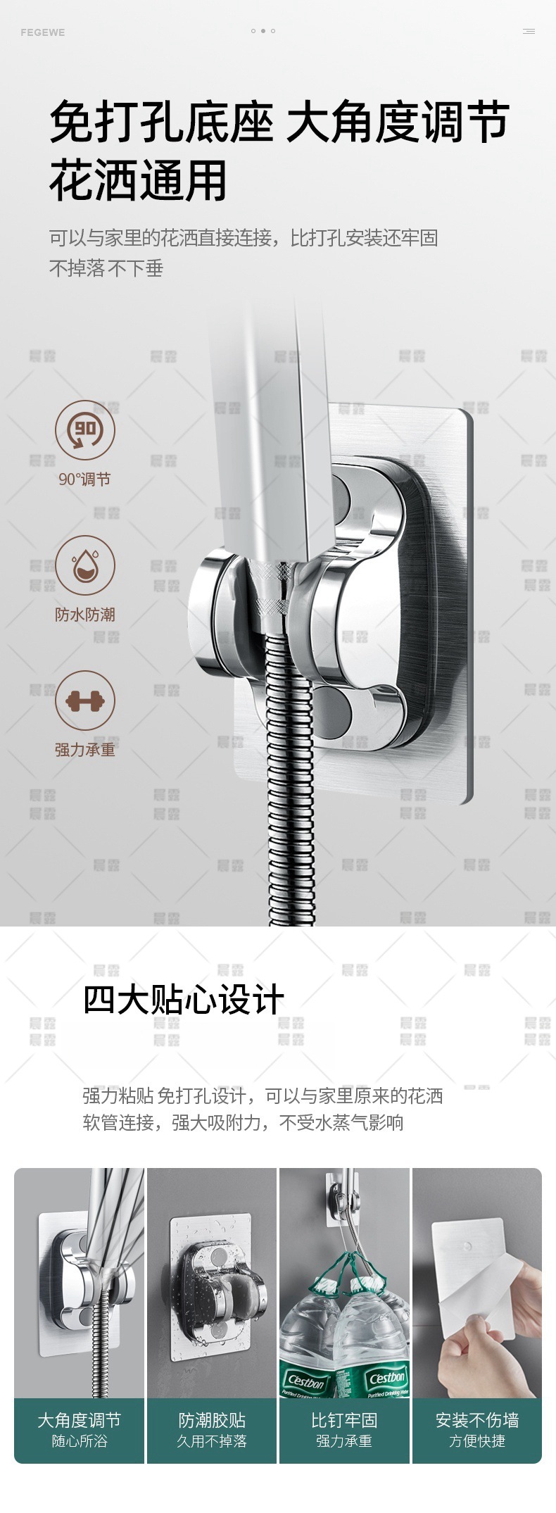 • 【SA-44】【밀크 화이트 세트 1】 가압 필터 샤워기 + 무타공 거치대