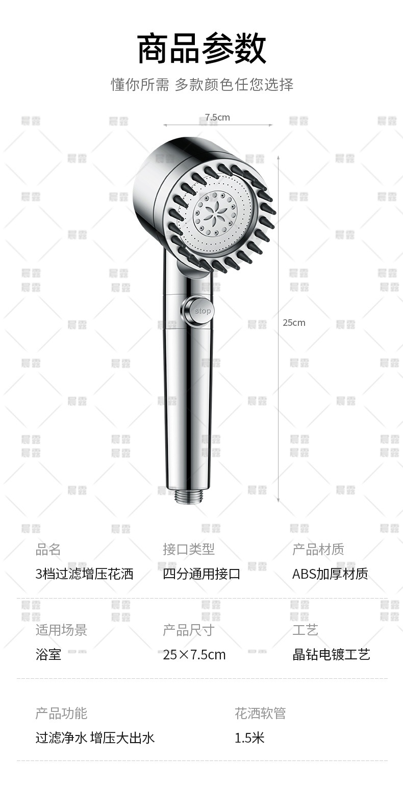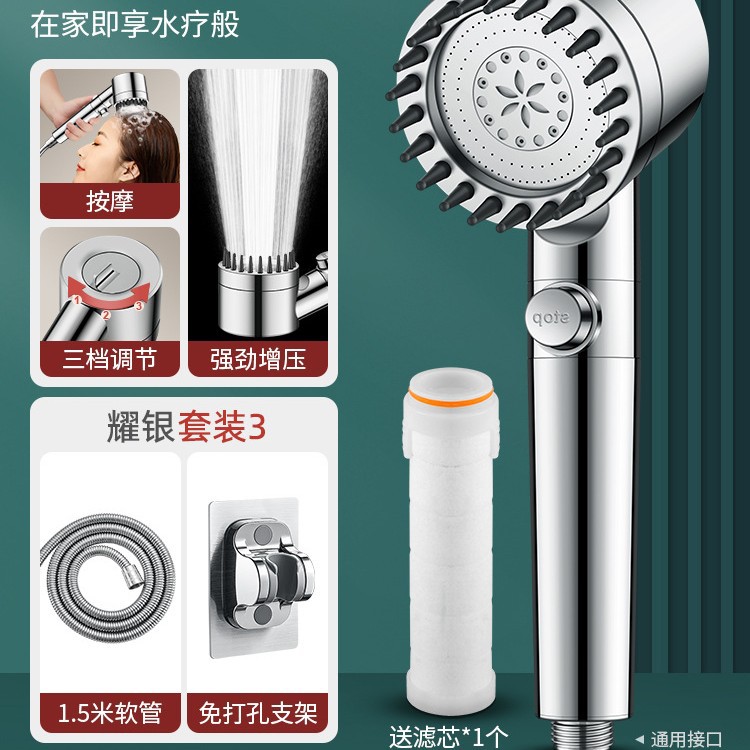 • 【SA-44】【샤이닝 실버 세트 3】고압 필터 샤워기 + 1.5m 방폭 호스 + 거치대