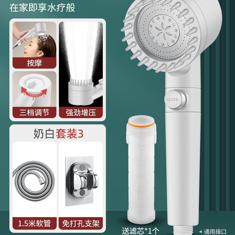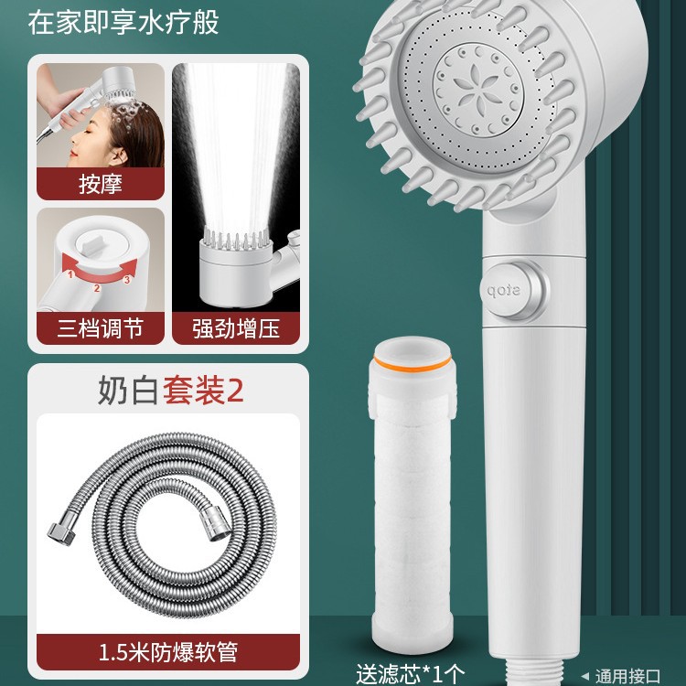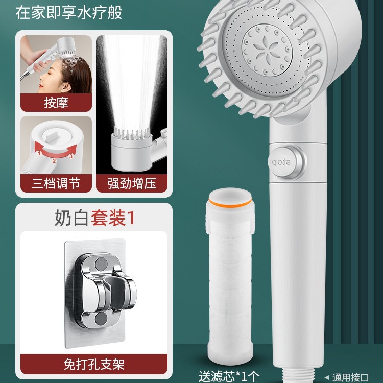 • 【SA-44】【밀크 화이트 세트 3】고압 필터 샤워기 + 1.5m 방폭 호스 + 거치대