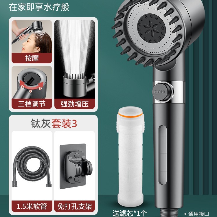 • 【SA-44】【티타늄 그레이 세트 3】 가압 필터 샤워기 + 1.5m 방폭 호스 + 거치대