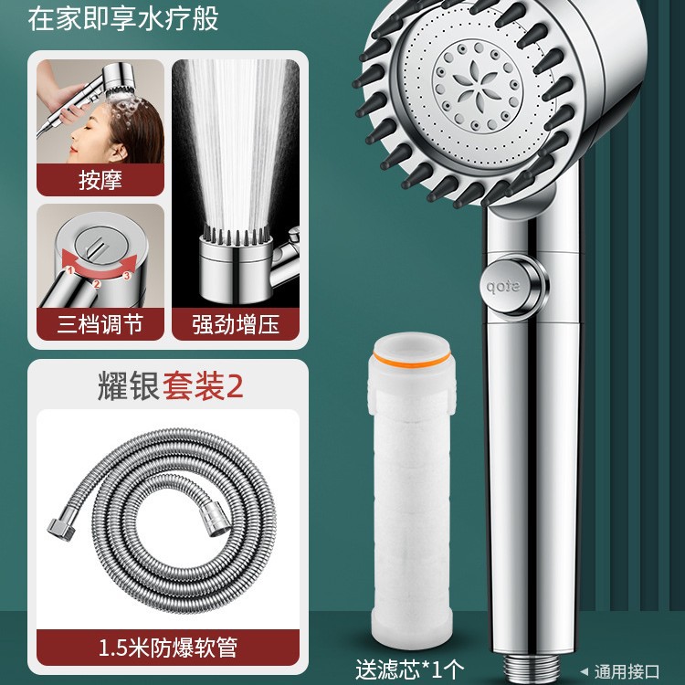 • 【SA-44】【샤이닝 실버 세트 2】고압 필터 샤워기 + 1.5m 방폭 호스