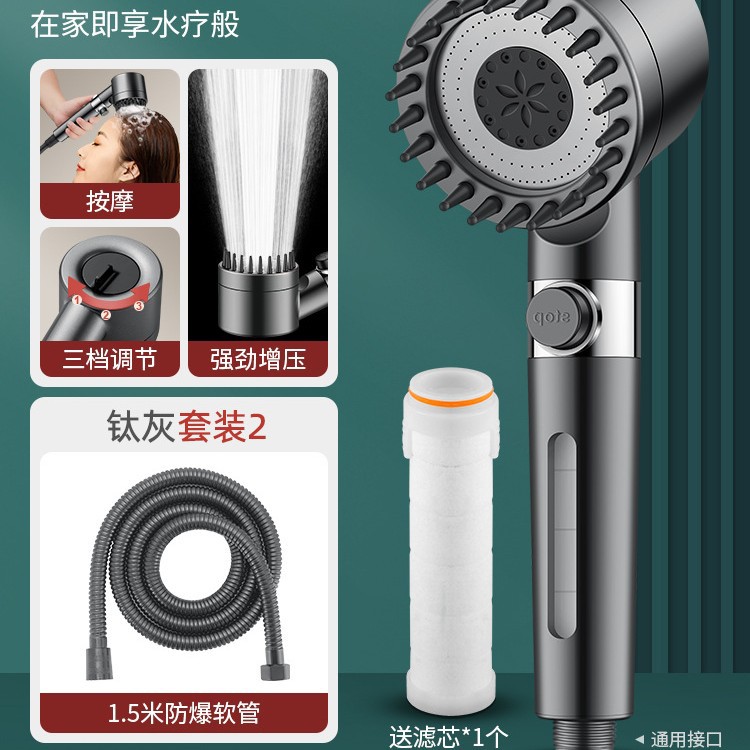 • 【SA-44】【티타늄 그레이 세트 2】고압 필터 샤워기 + 1.5m 방폭 호스