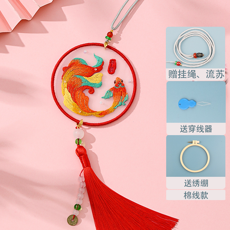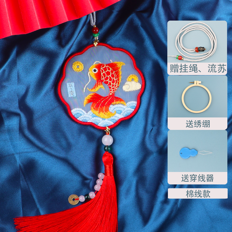 • 행운을 빌어요 잉어 면사 (바늘과 실 + 자수 들것 + 끈 + 튜토리얼 + 술)