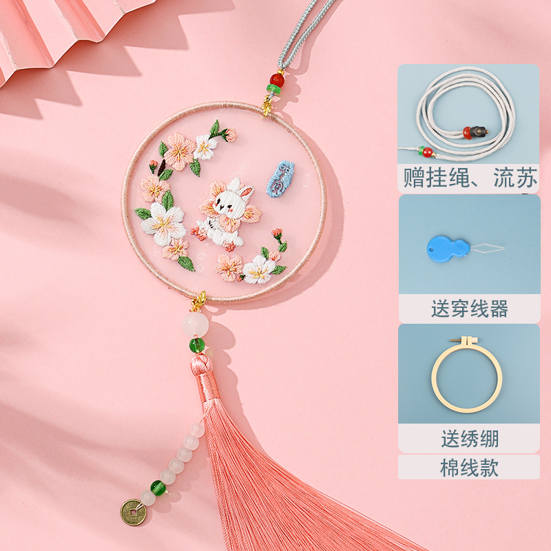 • 평화로운 토끼 면사 (바늘과 실 + 자수 들것 + 끈 + 튜토리얼 + 술)