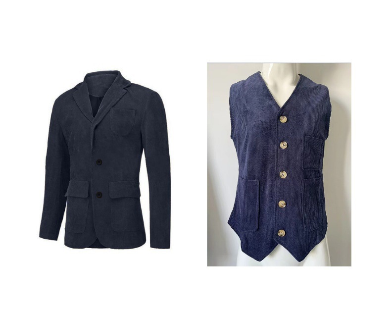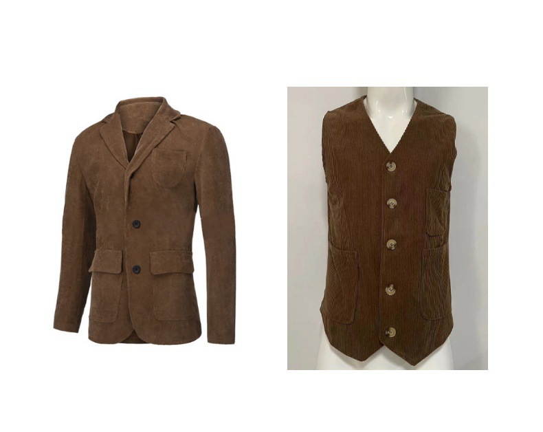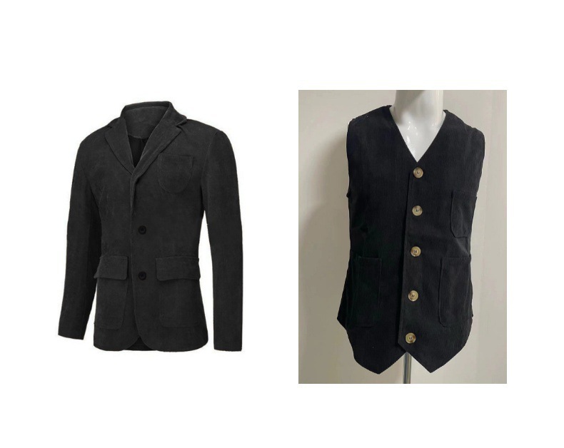 재고 국경 간 세트 봄과 가을 남자 코듀로이 영국 스타일 세트 재킷 베스트 톱 남자 세트