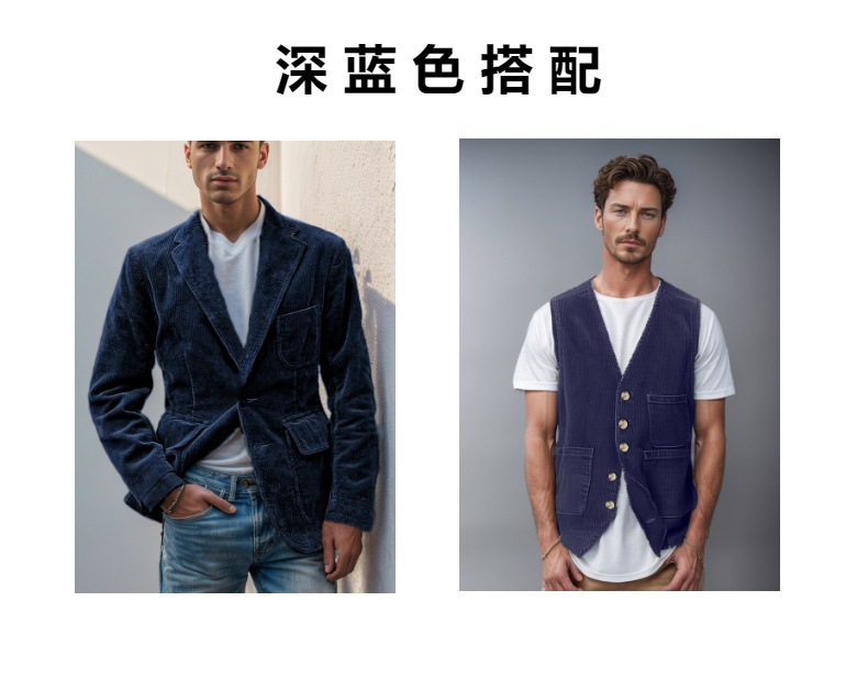 재고 국경 간 세트 봄과 가을 남자 코듀로이 영국 스타일 세트 재킷 베스트 톱 남자 세트스토어 가기