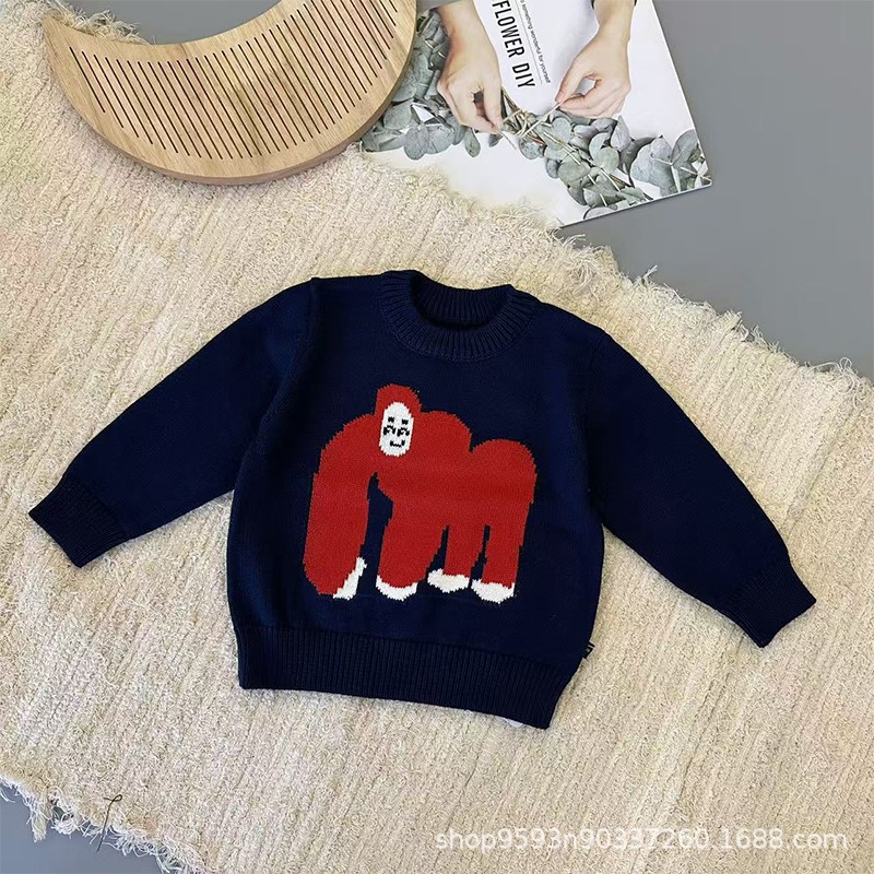 소년 소녀를위한 가을과 겨울 새로운 소년 만화 패턴 니트 스웨터 베이비 코튼 스웨터베이스 셔츠 최고 트렌디스토어 가기