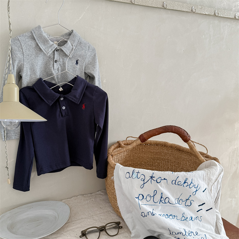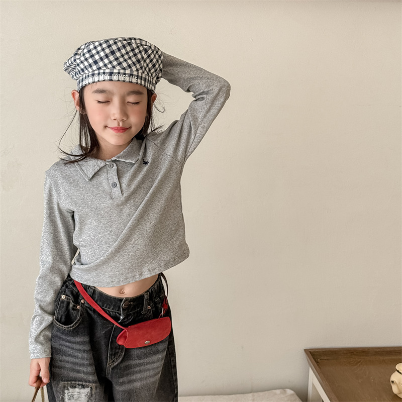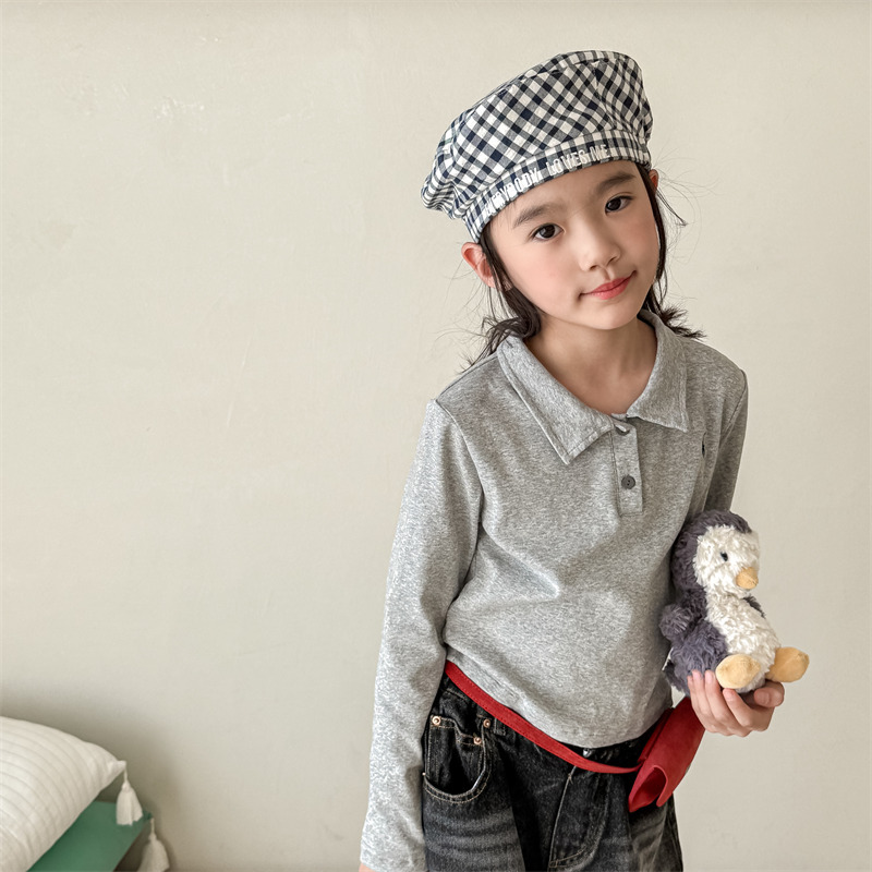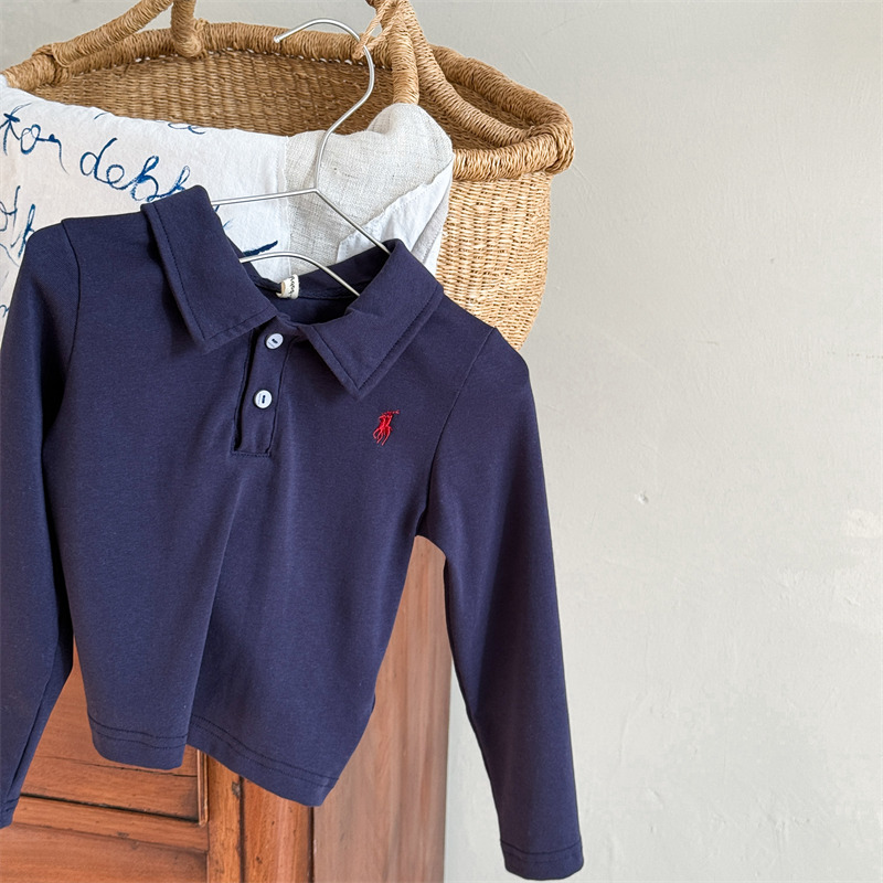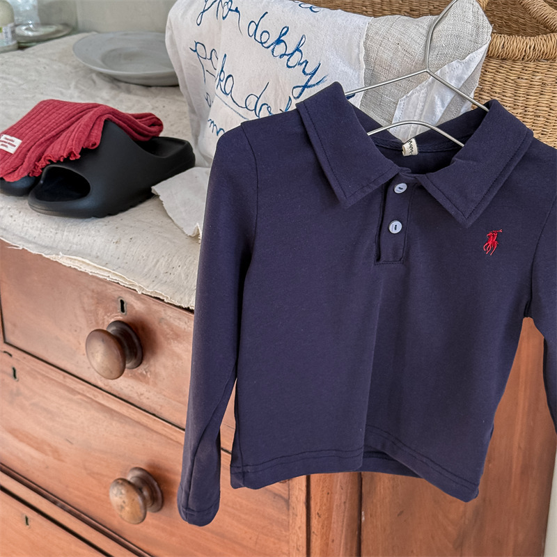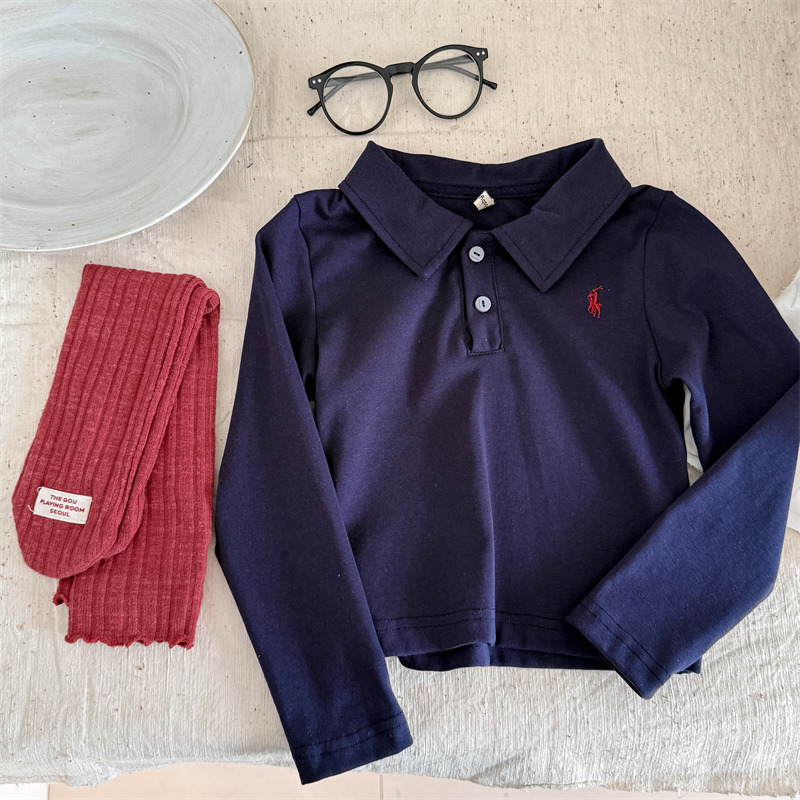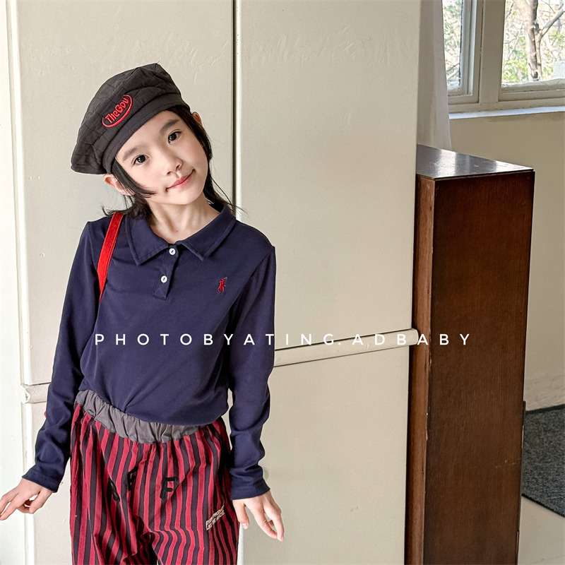 2025 가을 아동 의류 새로운 어린이 한국 스타일 가을 긴팔 티셔츠 소년 소녀 폴로 셔츠 바닥 셔츠 6072
