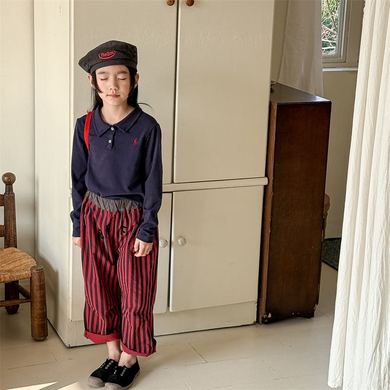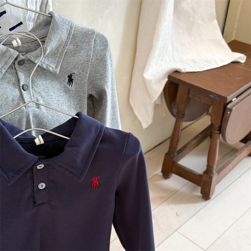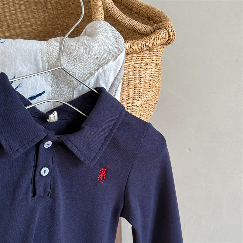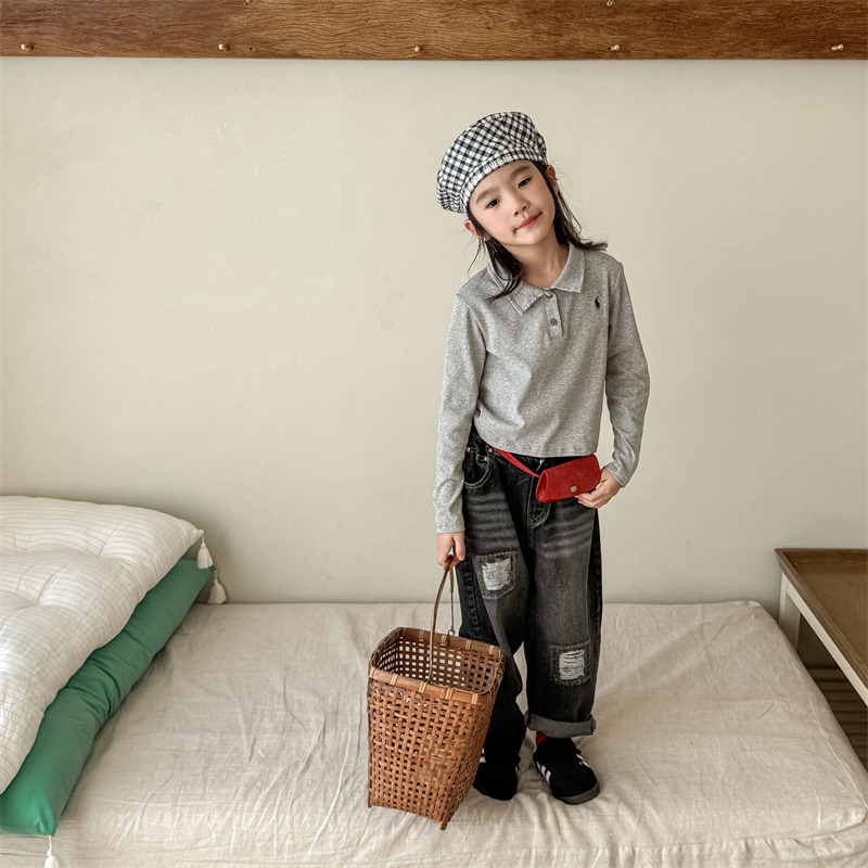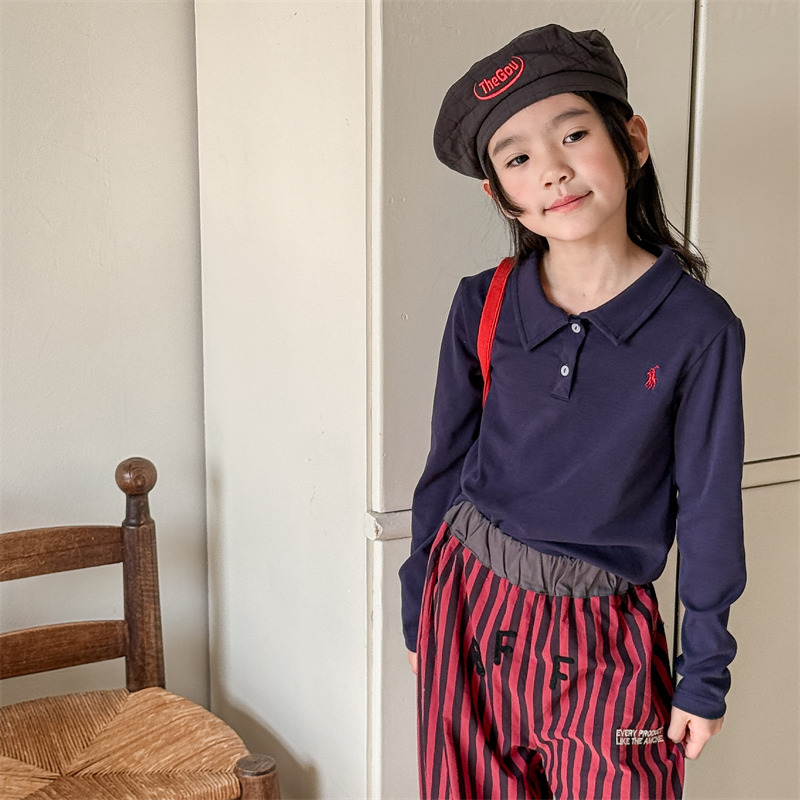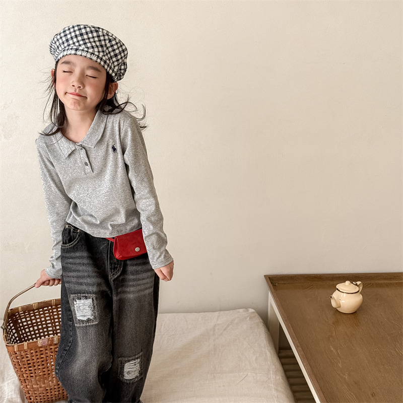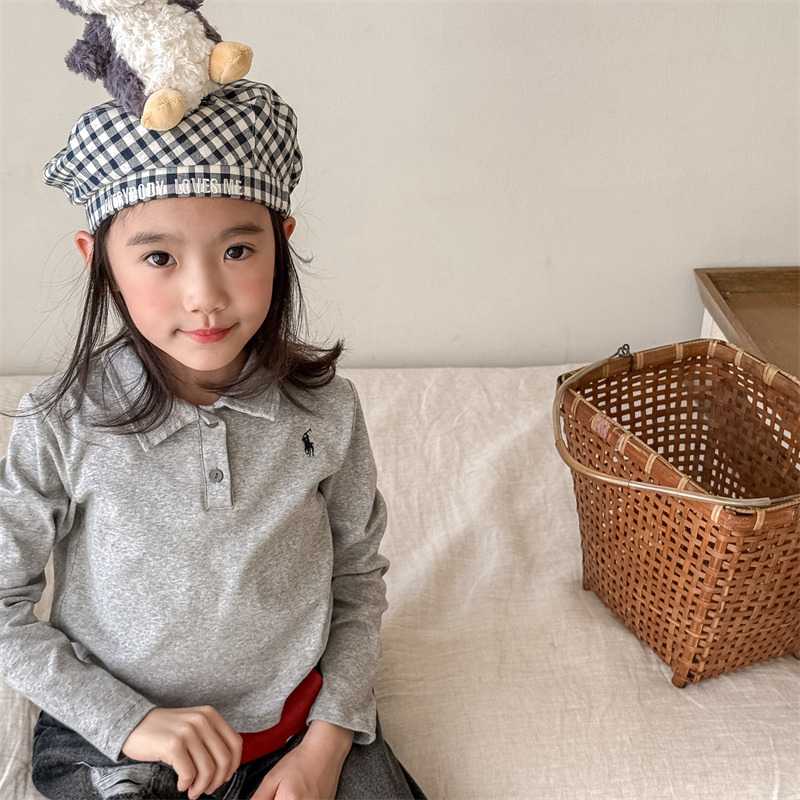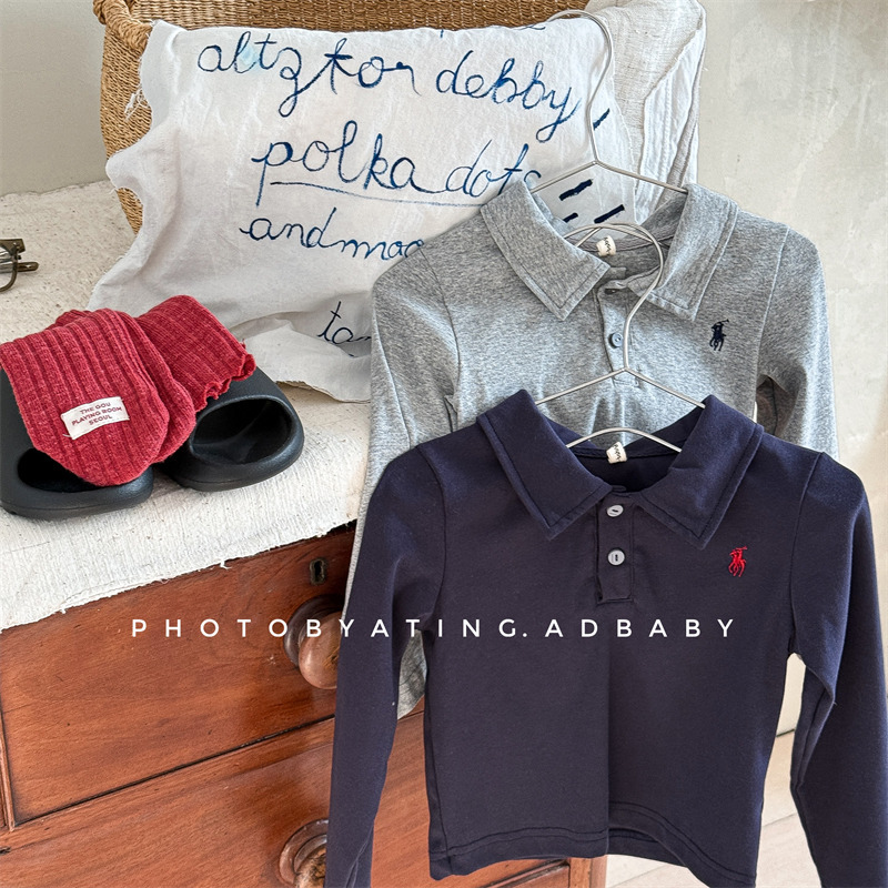 2025 가을 아동 의류 새로운 어린이 한국 스타일 가을 긴팔 티셔츠 소년 소녀 폴로 셔츠 바닥 셔츠 6072
