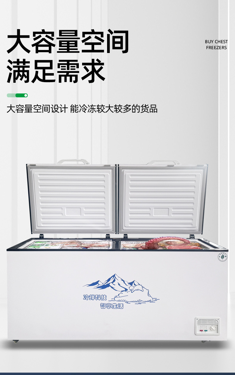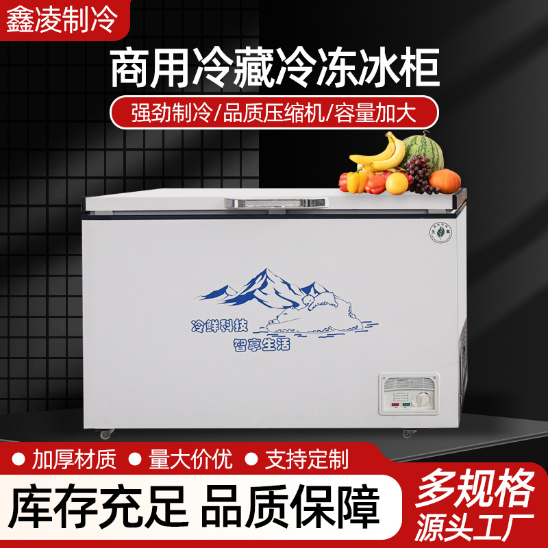 수평 냉동고 대용량 가정용 수평 냉장고 냉장고 이중 문 이중 온도 냉동고 상업용 냉동고