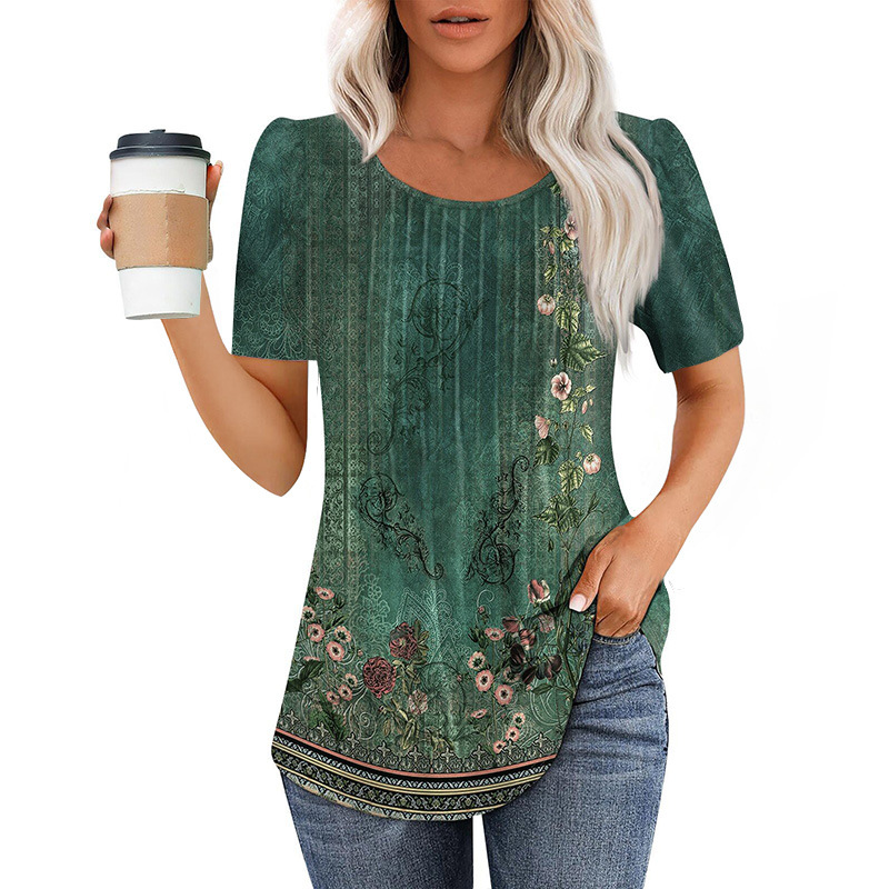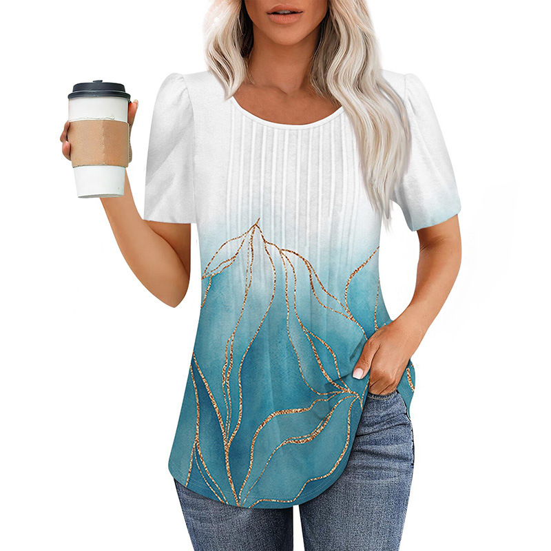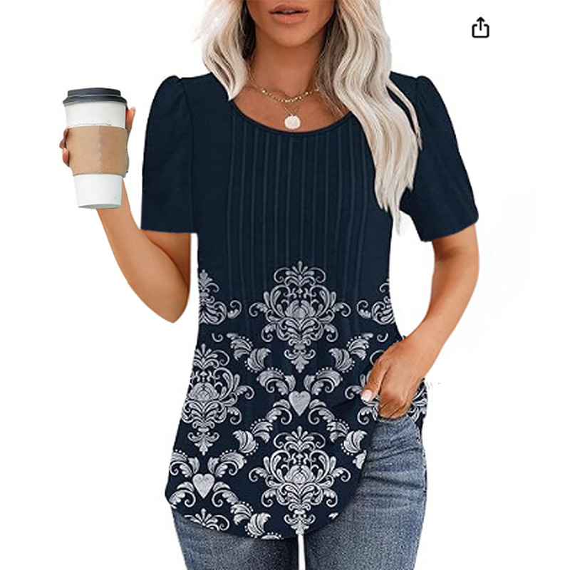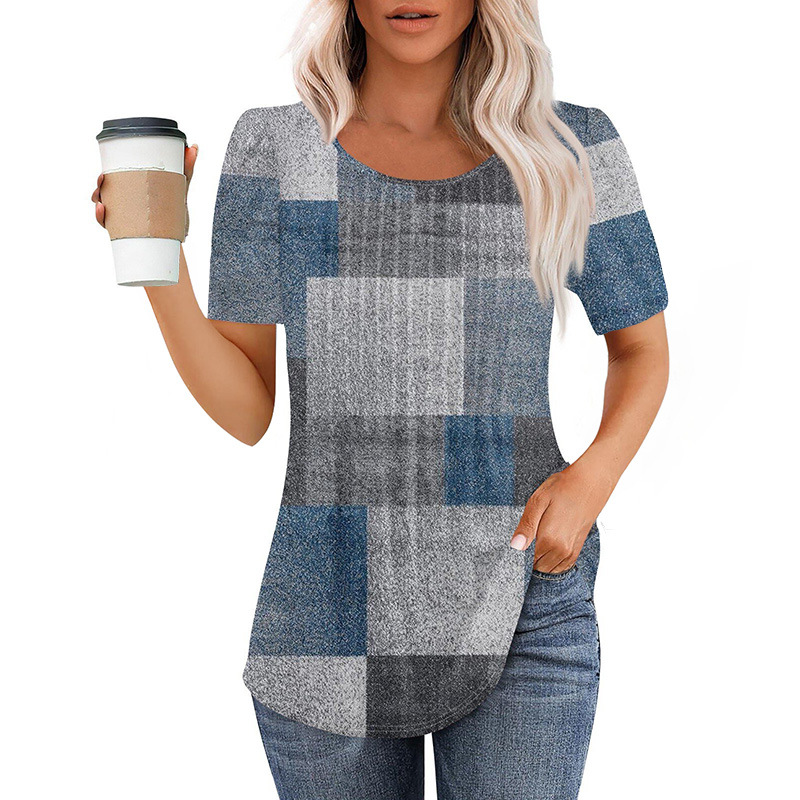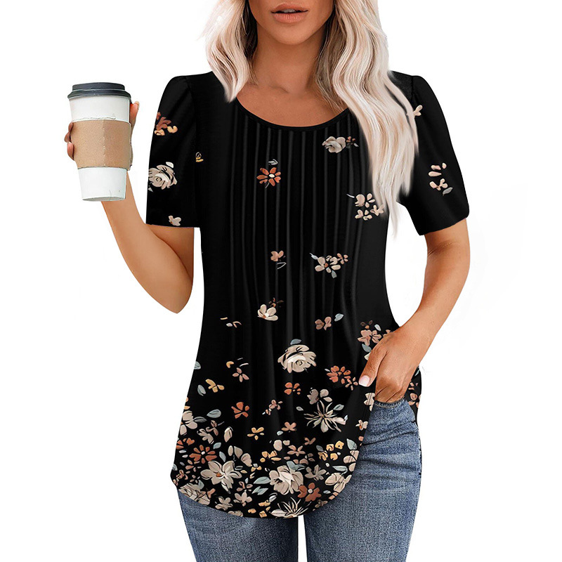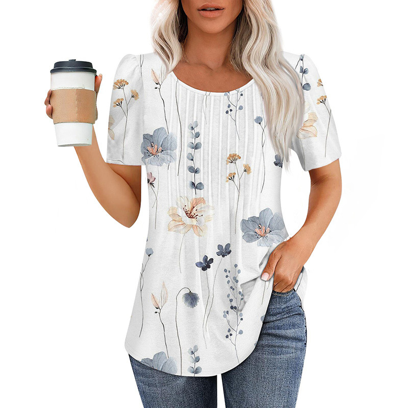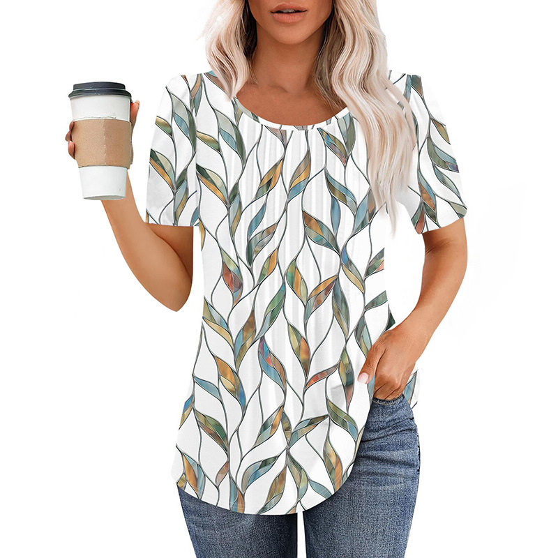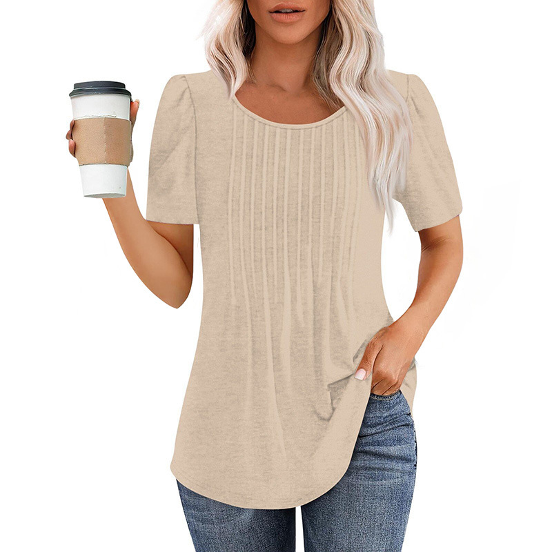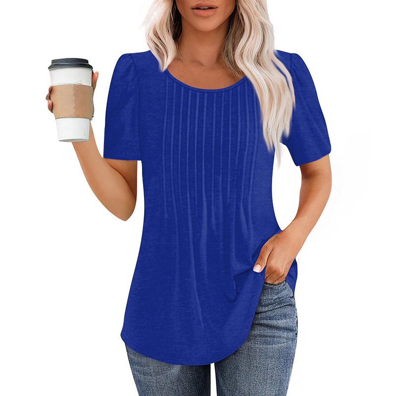 2024 아마존 폭발 eBay 유럽과 미국의 새로운 주름 라운드 넥 짧은 소매 티셔츠 여성 자켓 국경 간 대외 무역 여성 의류스토어 가기