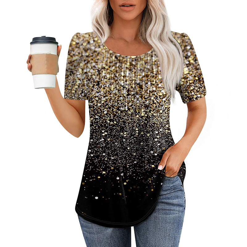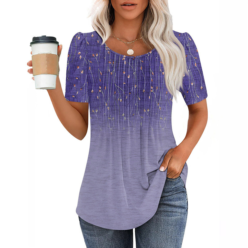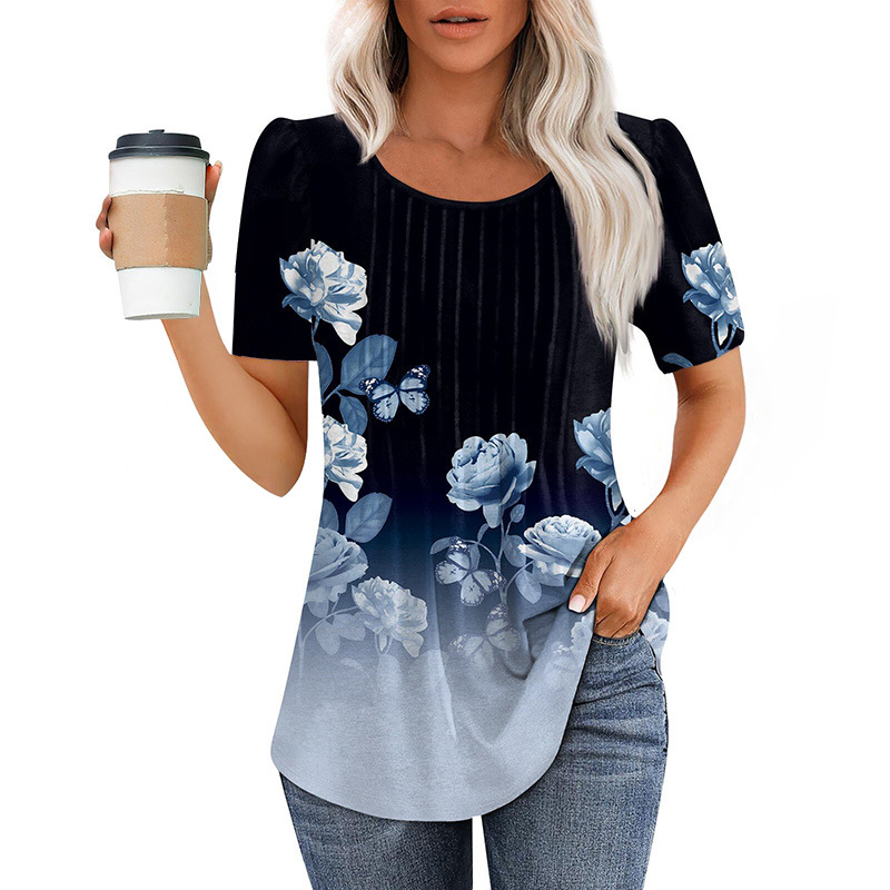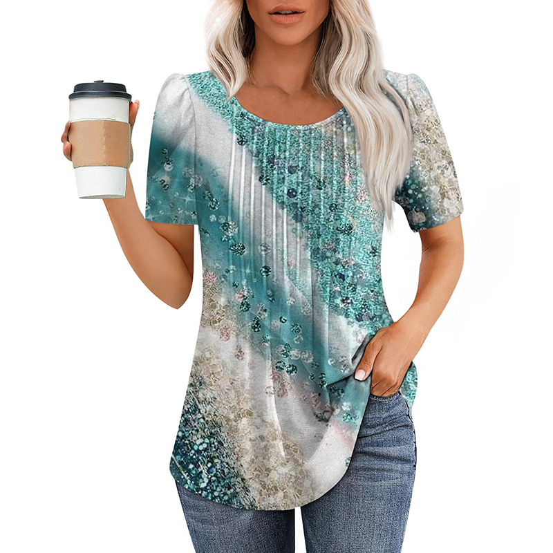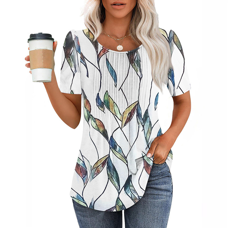 2024 아마존 폭발 eBay 유럽과 미국의 새로운 주름 라운드 넥 짧은 소매 티셔츠 여성 자켓 국경 간 대외 무역 여성 의류