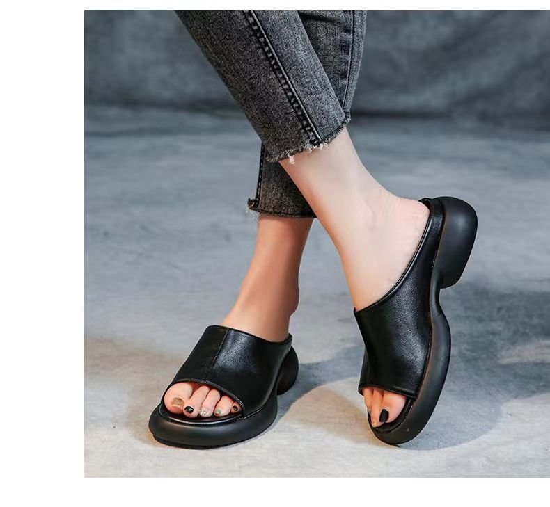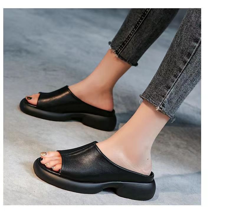 여자 플러스 사이즈 슬리퍼 외부 착용 2025 여름 새로운 올 매치 폭발 두꺼운 바닥 슬리퍼 편안한 부드러운 바닥 샌들스토어 가기