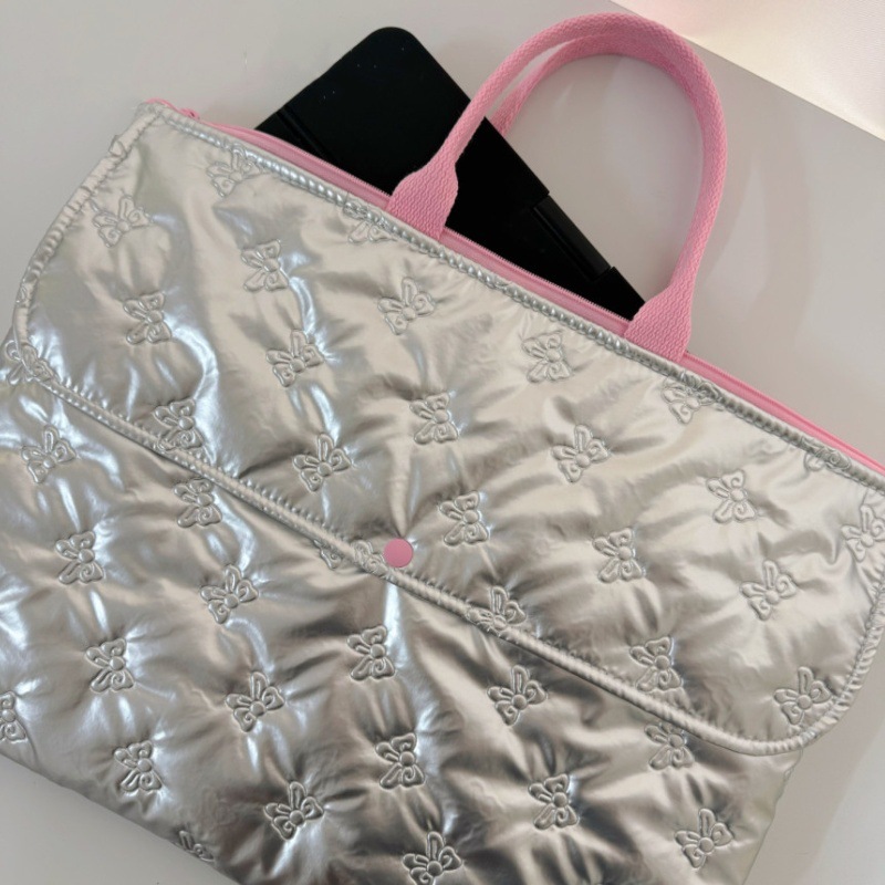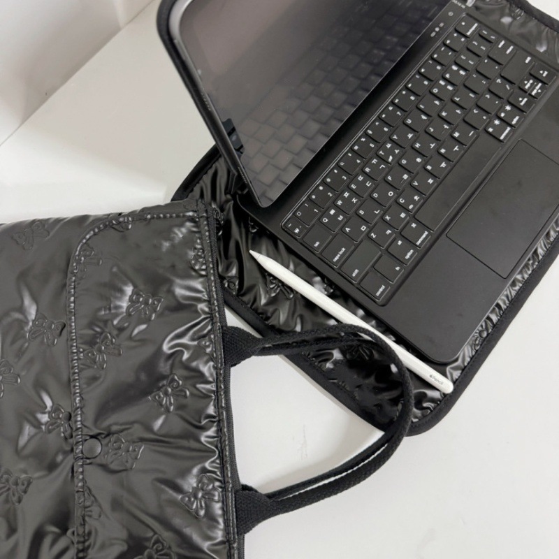 一款蝴蝶结pu绗缝电脑包