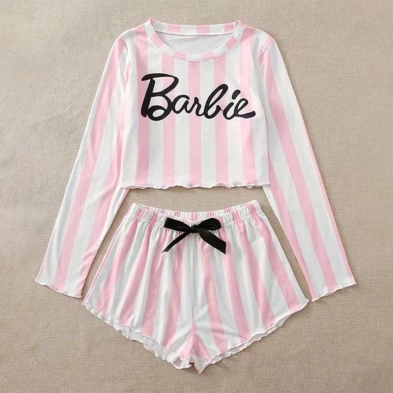 유럽과 미국의 폭발 국경 간 소녀 핑크 화이트 스트라이프 파자마 풀오버 캐주얼 긴 소매 반바지 홈 웨어스토어 가기
